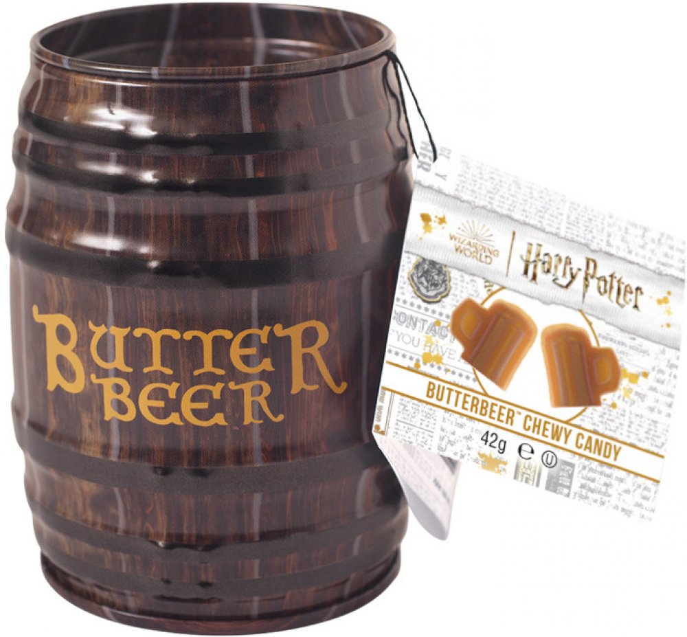 Pravý máslový ležák přímo ze sudu u nás možná neochutnáte, ale jako malou útěchu tu pro vás máme alespoň žvýkací bonbonky ve tvaru máslového ležáku v plechovém soudku. Ideální jako dárek pro všechny fanoušky Harryho Pottera.