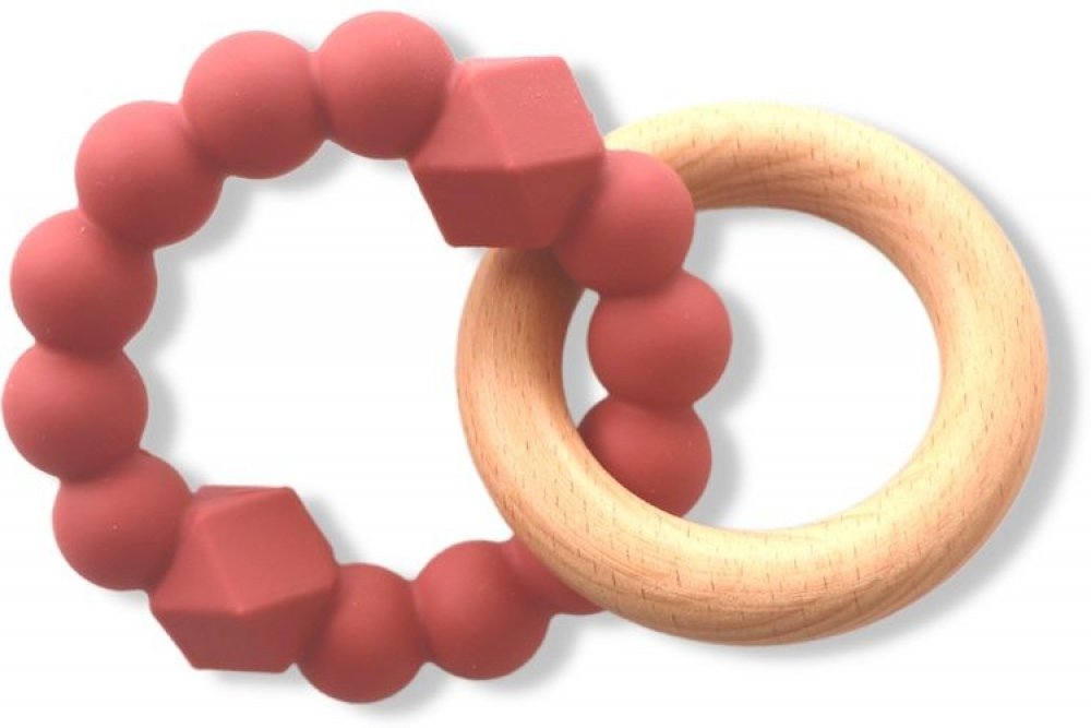 Kroužek z bukového dřeva má od přírody antibakteriální účinek a zároveň, díky své odlišné tvrdosti na rozdíl od silikonu, je žvýkání pestřejší. Dřevěný kroužek má hladký a pevný povrch.