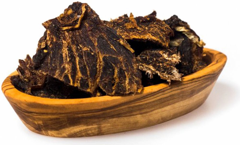 Vyrobeno z prémiového hovězího masa, 100% Natural. Bez jakýchkoli chemických přísad. Sušeno metodou Dry Meat. Obsahuje velké množství bílkovin.