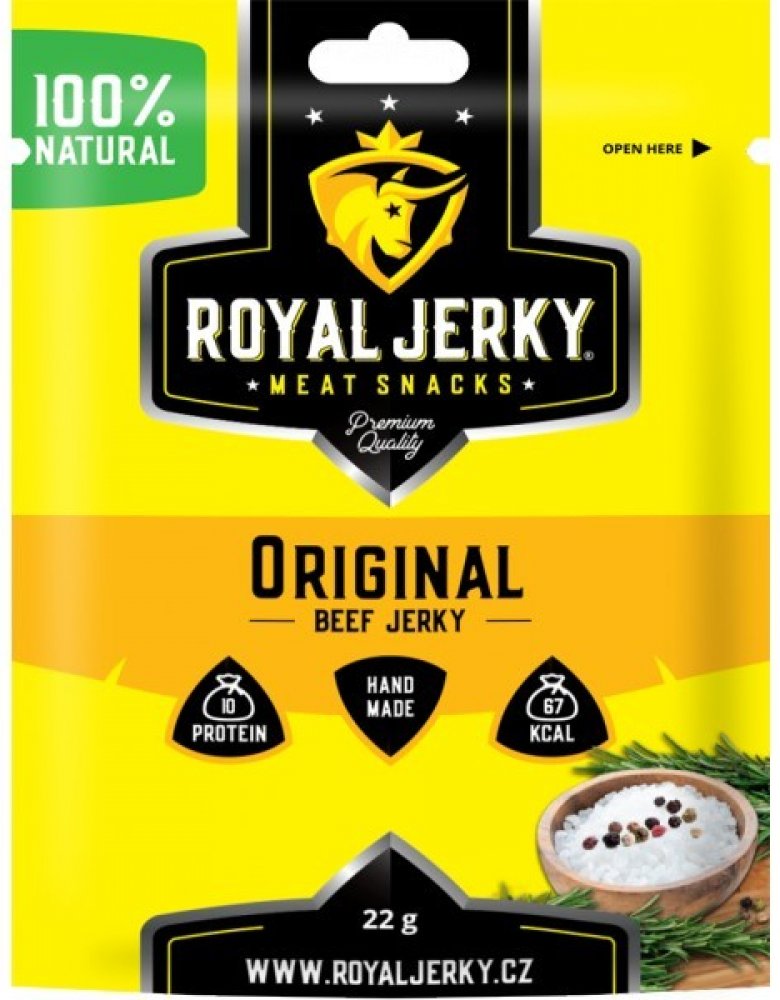 Produkt pro všechny, kdo milují vlastní chuť masa. Royal Jerky je lahodné sušené maso, které nabízí širokou škálu příchutí i možností bez přidané příchuti, aby vyhovělo všem vkusům. Každý kousek je pečlivě připraven a sušen, aby poskytl dokonalou kombinaci chutí a textury. Díky kvalitním surovinám a preciznímu zpracování se jedná o skvělý zdroj bílkovin, ideální pro aktivní životní styl nebo jako chutná svačina kdykoliv během dne.