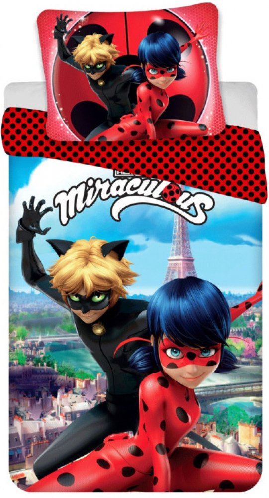 Bavlněné povlečení s motivem Miraculous - Kouzelná Beruška a Černý Kocour. Maximální kvalitu a jemnost prádla Vám zaručí praní zásadně po rubu a se zapnutými knoflíky (zipem).Rozměr : 140/200, 90/70. Materiálové složení : 100% bavlna. Plošná hmotnost: 110 g/m2. Praní : 40°C. Zapínání : zip. Barevné prádlo pereme v prášku na jemné a barevné prádlo. Sušte v závěsu. Pokud budete dodržovat tato doporu...