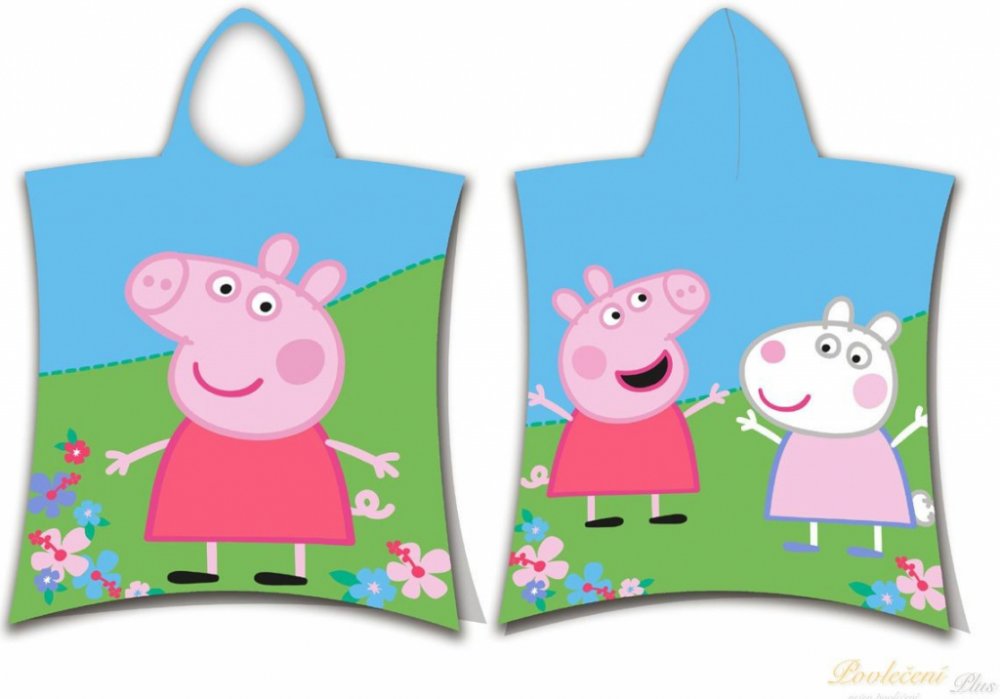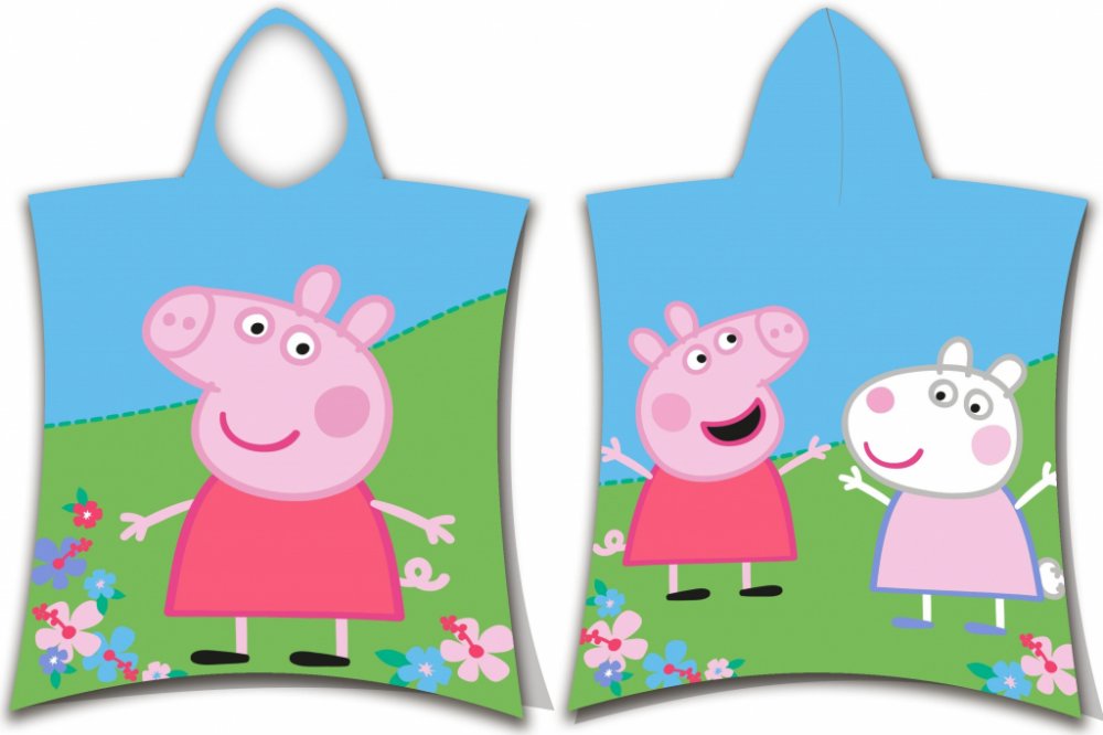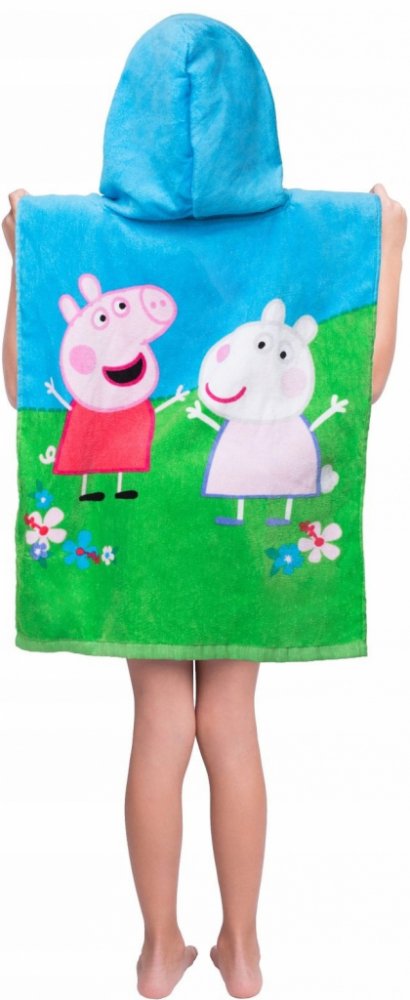 Pončo Prasátko Peppa je vyrobeno z kvalitní 100% bavlny, která zaručuje skvělou savost a zároveň hebkost k dětské pokožce. Pončo je v rozměru 50x115 cm a lze jej použít jako klasickou osušku, do které se dítko po koupeli zabalí a nebo například v létě na pláži jako ochranu proti slunci. Ideální pro děti od 2 do 6 let.