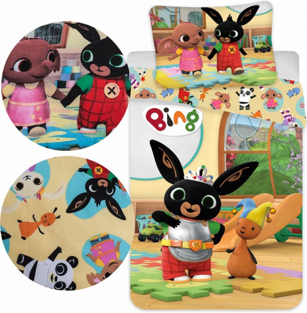 Dětské povlečení s oblíbeným zajíčkem Bingem a jeho přáteli se stane krásným doplňkem dětského pokoje. Povlečení ze 100% bavlny zaručí skvělou prodyšnost, jemnost a dlouhou životnost. Se zapínáním na zip bude povlékání hračka.