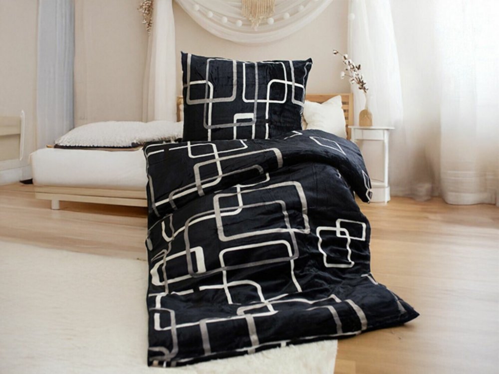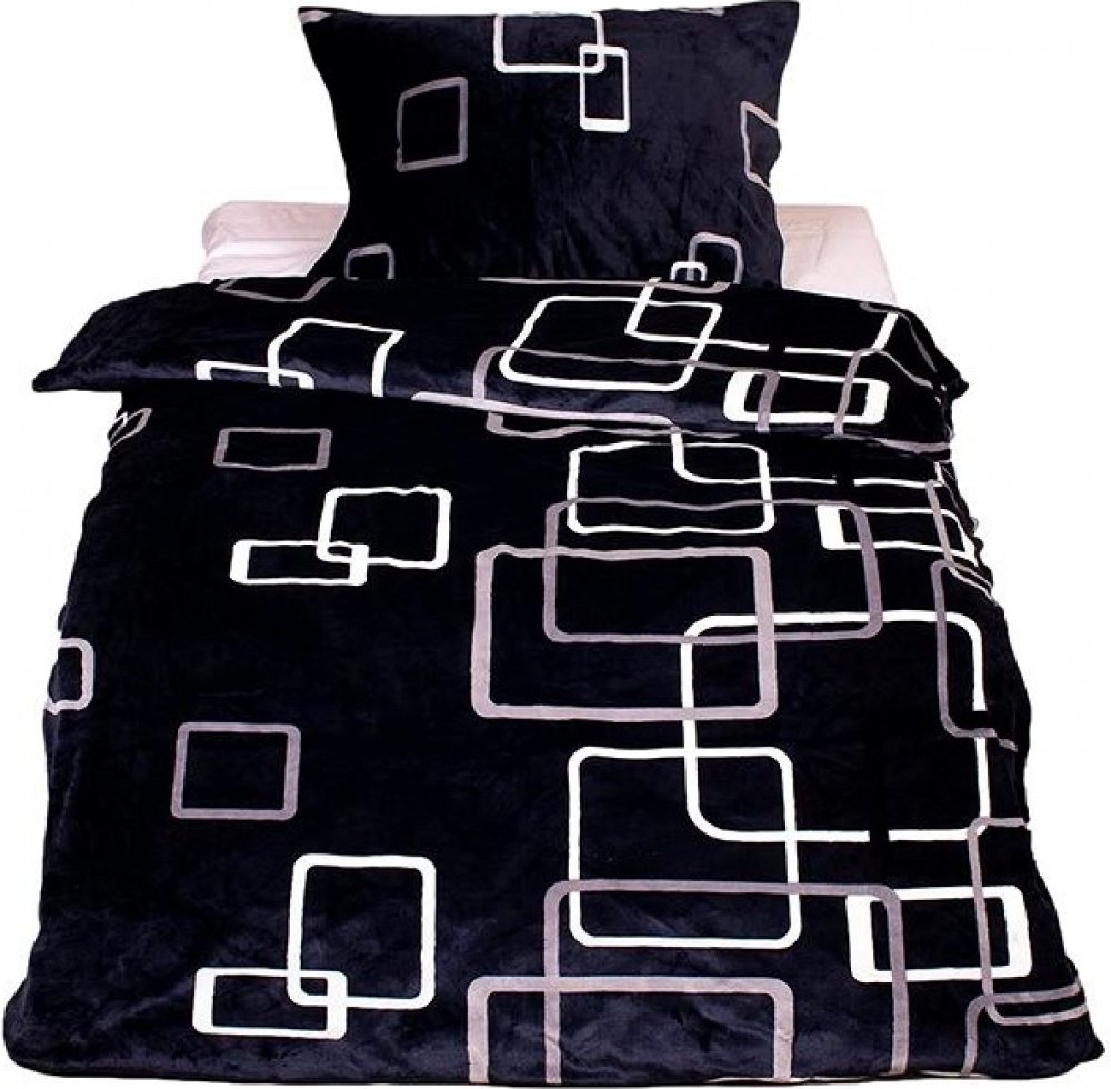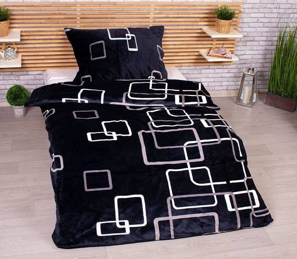 Jerry Fabrics Povlečení mikroflanel Čtverce černobílé 140x200 70x90