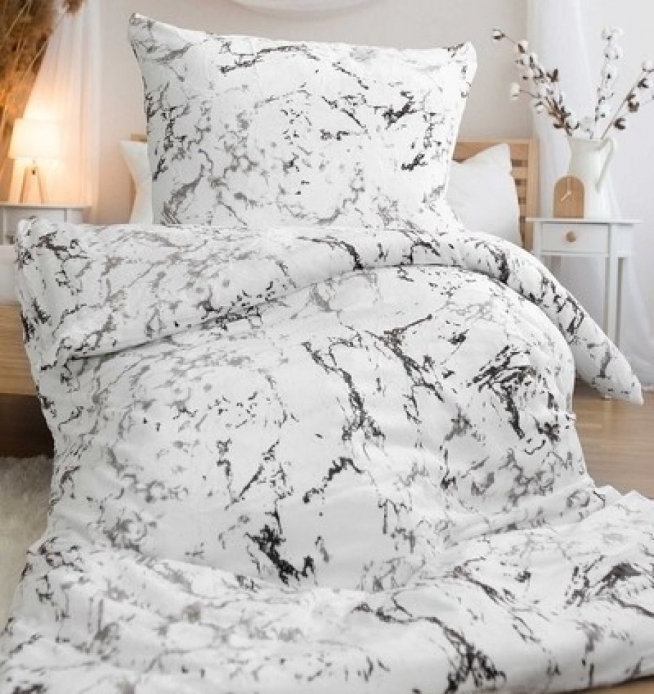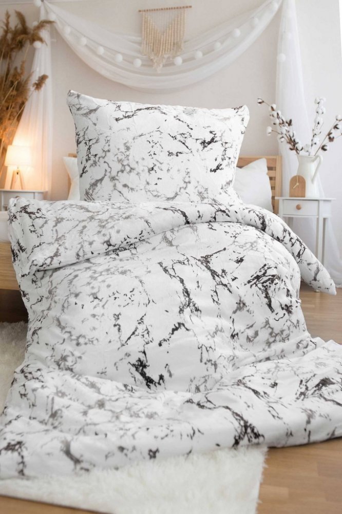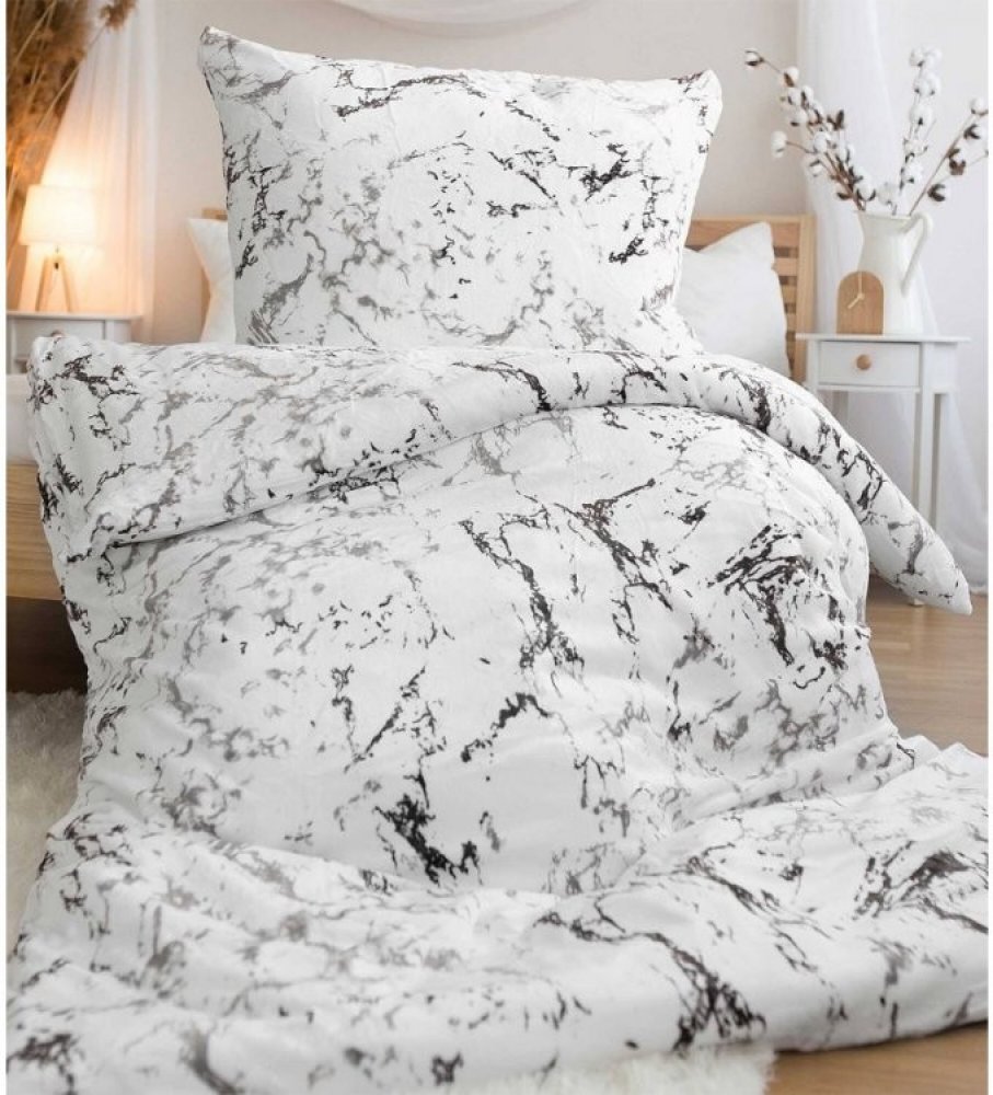 Mikroflanelové povlečení Mramor nabízíme kombinací originálního desingnu a vysoce kvalitního materiálu. Bílé povlečení s šedým mramorováním zpříjemní chvíle klidu a pohody ve Vaší ložnici.