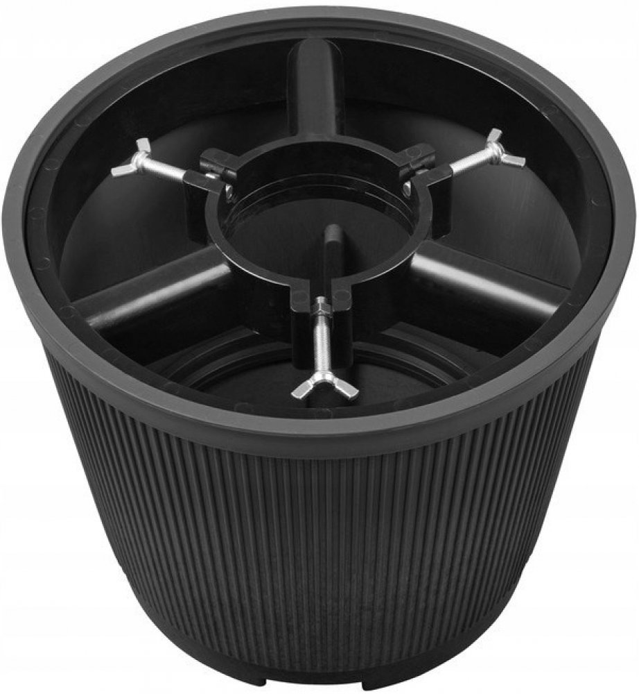 určeno pro jedle, smrky, borovice do výšky 2,5 m- Objem hrnce 10 l- možnost zalévání stromku- tři křídlové šrouby pro vertikální upevnění stromu- možnost vyjmutí plastového prvku- možnost plnění pískem a vodou - průměr hrnce 310 mm - výška hrnce 250 mm- max. montážní otvor 105 mm- hmotnost 3,1 kg
