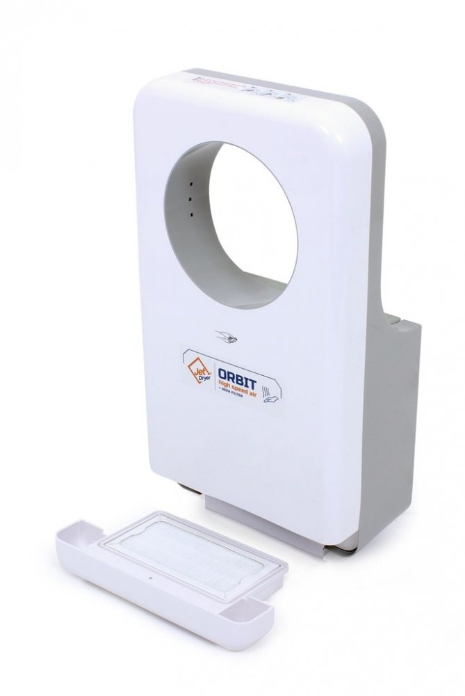 Jet Dryer ORBIT je vybaven kombinovaným výměnným filtrem. Nejdříve jsou zachyceny větší prachové částice. Tato část filtru je opatřena antibakteriální úpravou. Druhým stupněm filtrace je HEPA filtr který zachytí více než 99,97% částic o velikosti 300 nanometrů.