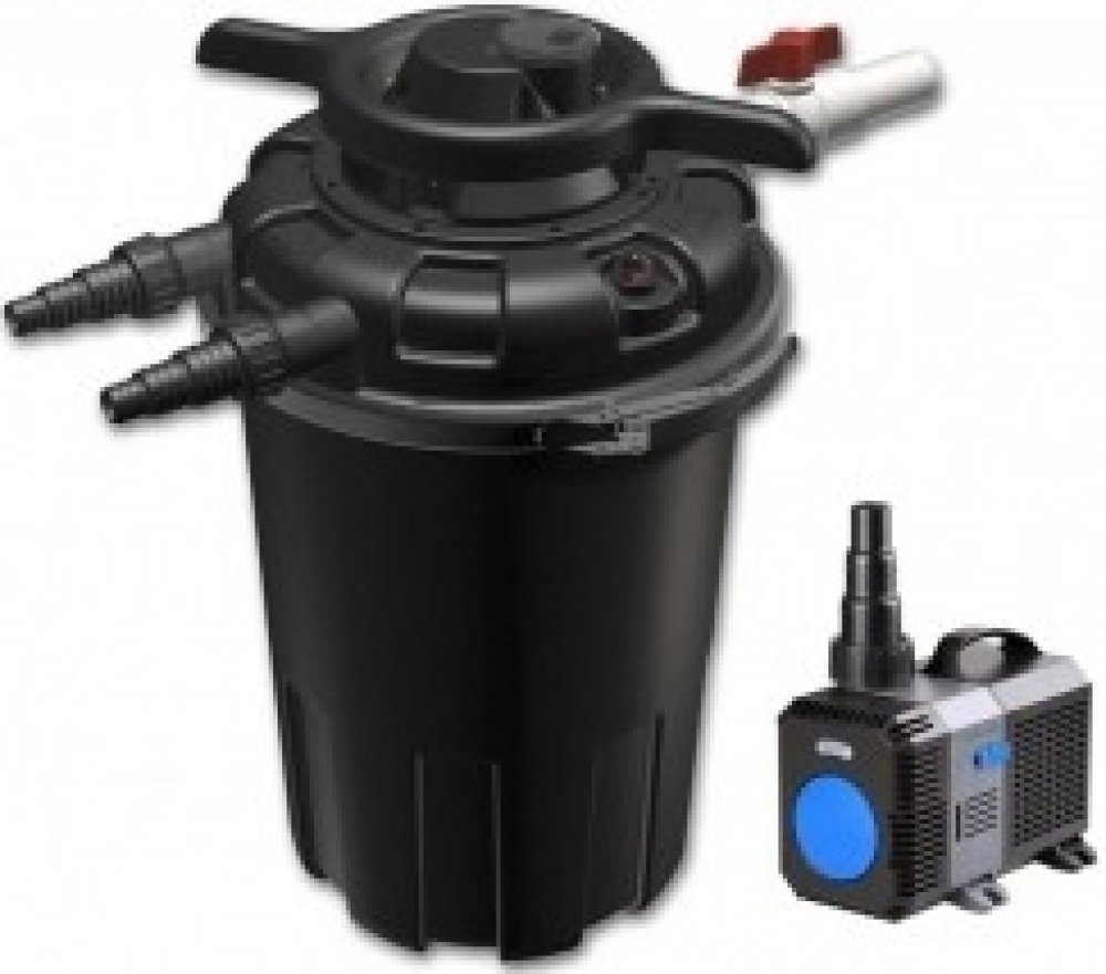 Filtrační jezírkový set složený z průtokového filtru s integrovanou UV lampou a čerpadla. Vhodné pro okrasná jezírka o objemu do 24 m3 bez zarybnění, do 12 m3 s rybami.