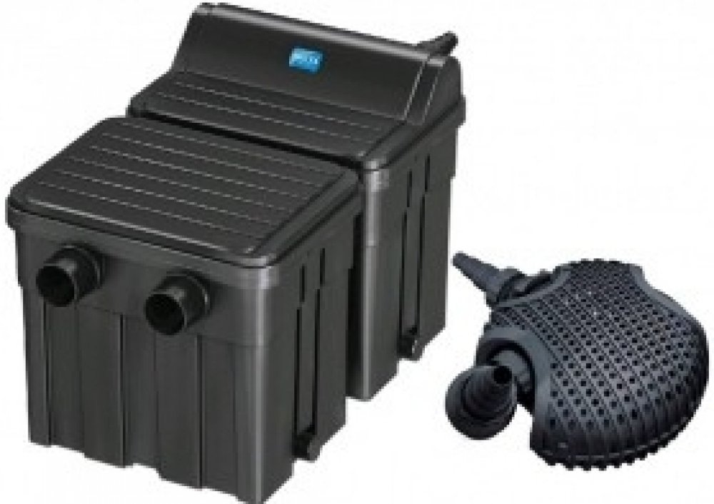 Filtrační jezírkový set složený z průtokového filtru s integrovanou UV lampou a čerpadla. Vhodné pro okrasná jezírka o objemu do 24 m3 bez zarybnění, do 12 m3 s rybami.