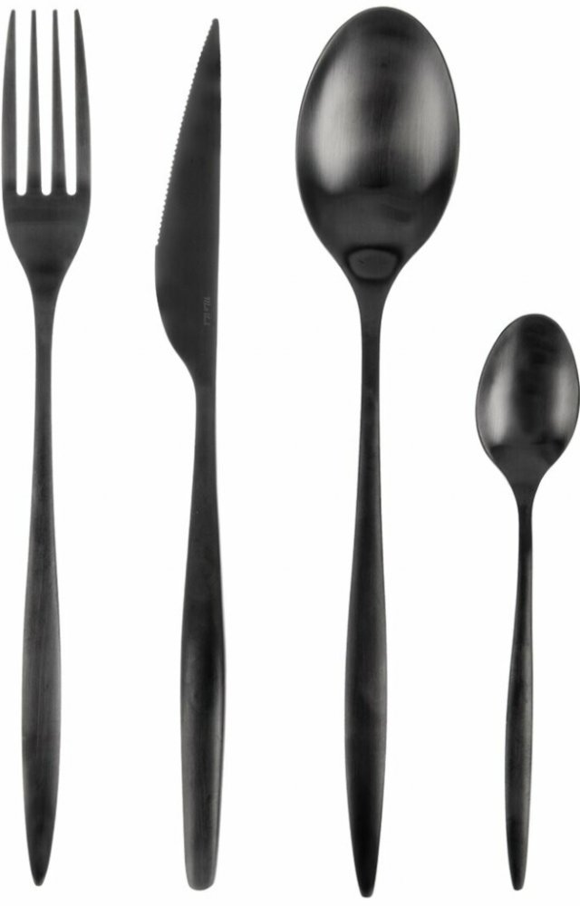 Lze je umývat v myčce, pokud ale chcete zachovat krásný vzhled, využívejte spíše ruční mytí. Sada v černém odstínu (povrch PDV) je vhodná i jako praktický dárek. V nabídce najdete příbory stejného tvaru, pouze v matném stříbrném proveden