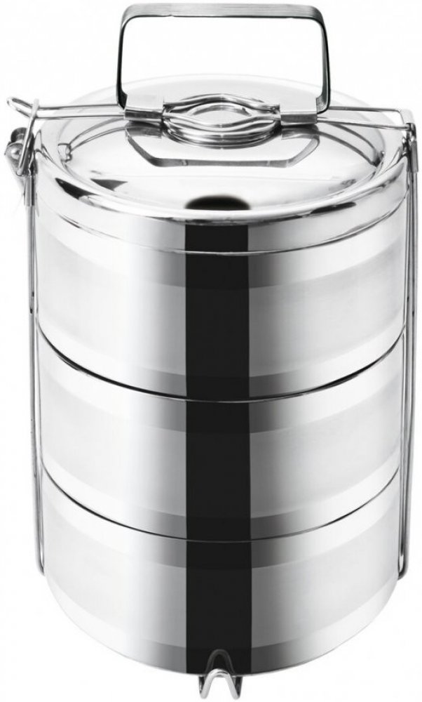 Obsahuje 3 nerezové dvoustěnné misky o objemu 1,1 l. Misky jsou ideální pro uložení celého menu, polévky, hlavního jídla a dezertu. Jeho součástí je také kovový stojan, který umožňuje skládání nádob na sebe a zároveň je opatřený přezkou sloužící k jejich pevnému zajištění.