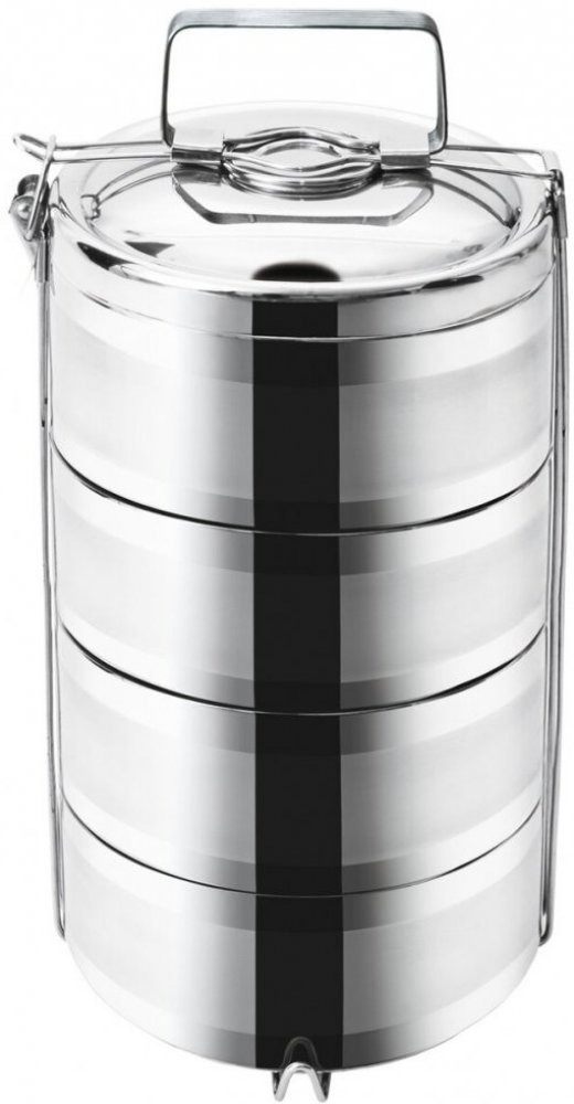 Obsahuje 4 nerezové dvoustěnné misky o objemu 1,1 l. Misky jsou ideální pro uložení celého menu, polévky, hlavního jídla, samostatné přílohy a dezertu. Jeho součástí je také kovový stojan, který umožňuje skládání nádob na sebe a zároveň je opatřený přezkou sloužící k jejich pevnému zajištění.