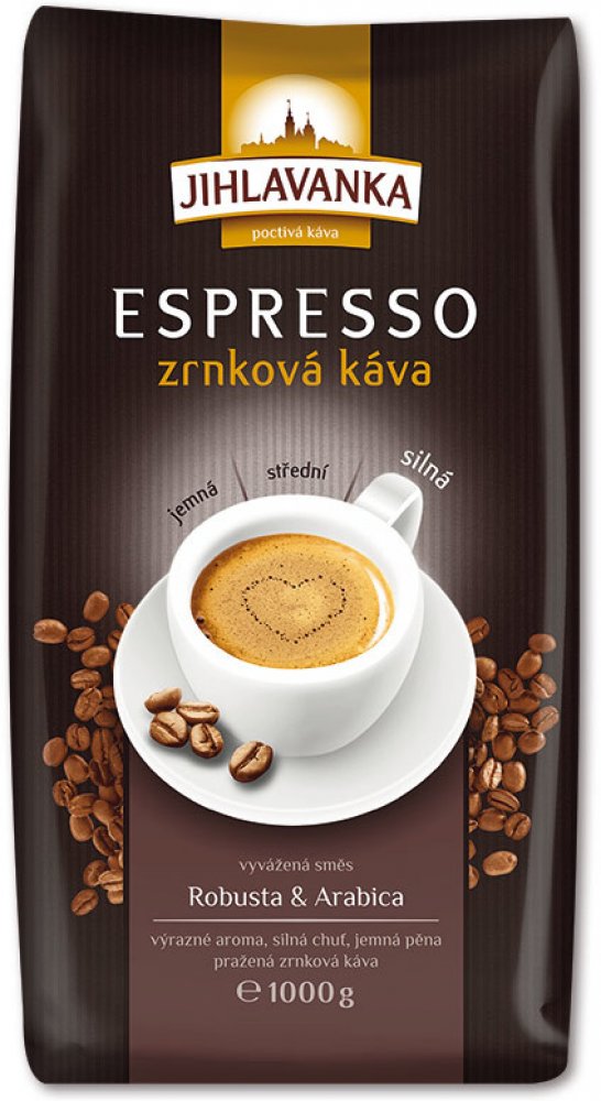 Spojením vybraných kávových zrn odrůd Robusta a Arabica vznikla lahodná káva Jihlavanka Espresso s výjimečně silnou chutí a výraznou aromou. Kontrast mezi intenzivní chutí a jemnou pěnou vytváří skutečný zážitek v každé šálce.