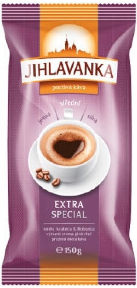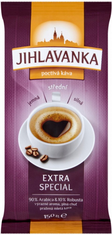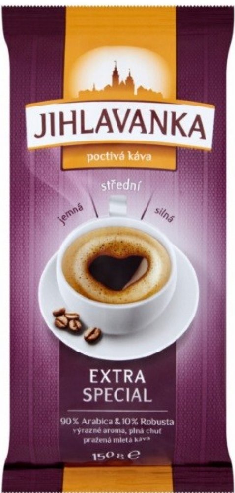 Vychutnejte si kávu Jihlavanka Extra Special. Spojuje se v ní bohatá tradice a pečlivý výběr kávových zrnek odrůd Arabica a Robusta. Každý její šálek Vás tak okouzlí svou plnou chutí a jedinečným výrazným aroma. Arabica a Robusta jsou nejrozšířenější odrůdy kávovníku. Odrůda Arabica roste ve vyšších nadmořských výškách a je ceněná pro svou ušlechtilou jemnou komplexní chuť s mírně nakyslými tóny. Odrůda Robusta je odolnější, roste v nižších nadmořských výškách a je pro ni charakteristická nezaměnitelná hořká chuť, vyšší obsah kofeinu a plné zemité tělo.