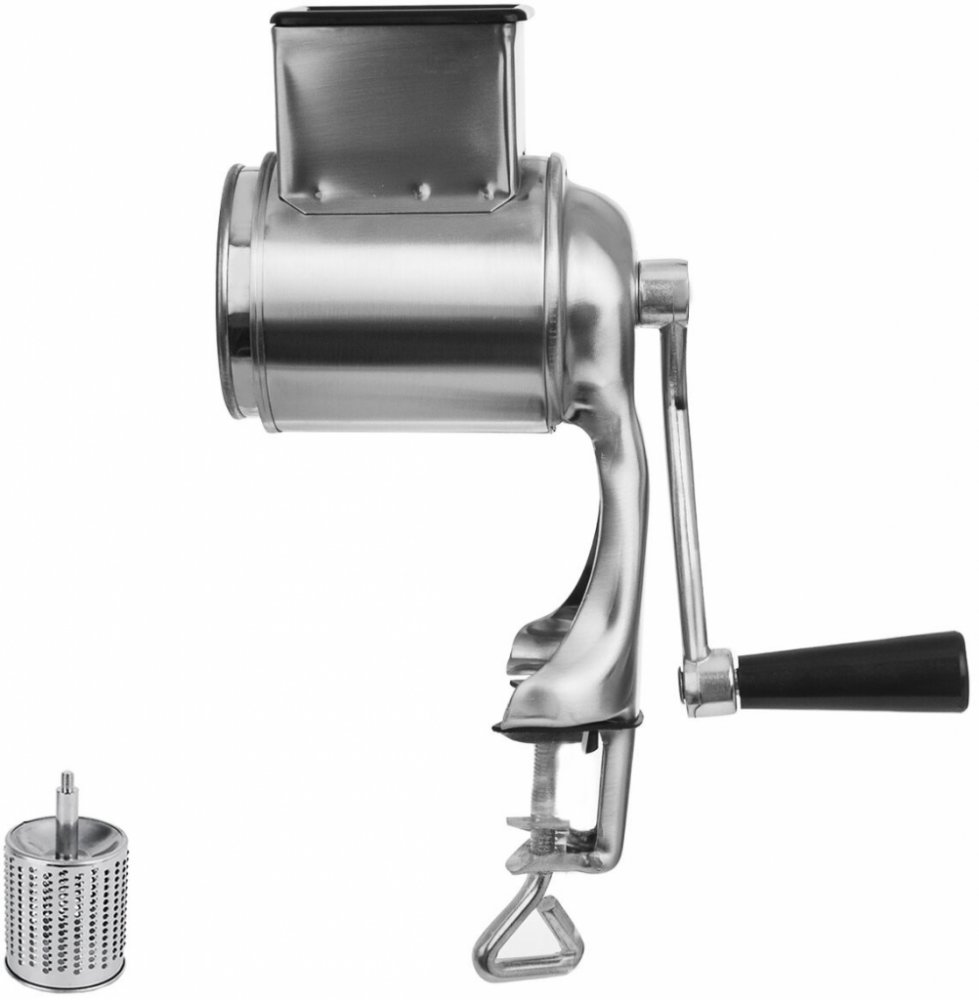 Mlýnek s nástavcem, který Vám pomůže snadno nastrouhat najemno ořechy, strouhanku, piškoty, sýr. Uchycení ke stolu na šroub. Násypka s přítlačným nástavcem pro bezpečné mletí. Snadné sestavení, manipulace a údržba. Materiál: nerez, plast PE. Rozměry: výška od stolu 20 cm, násypka 6x5 cm. Max. tloušťka desky 3,5 cm.