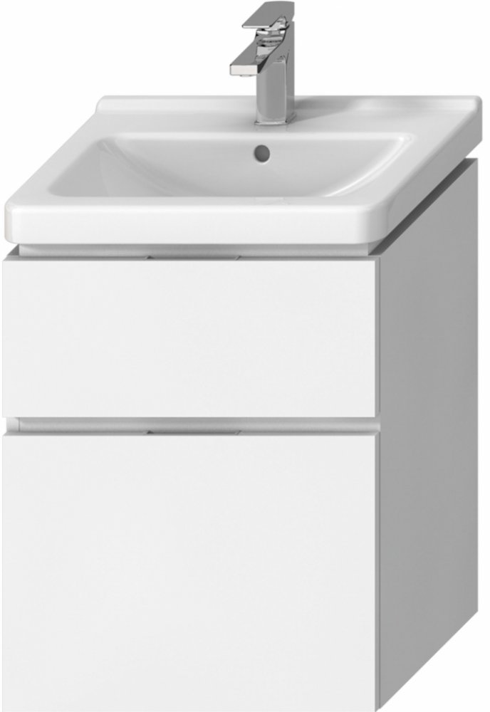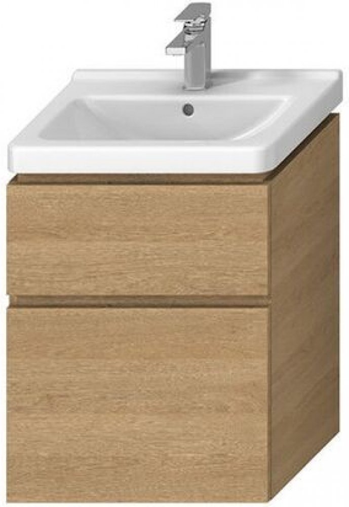 Skříňka pod umyvadlo 55 cm, 2 zásuvky rozměr šířka 540 mm, výška 683 mm, hloubka 399 mm úchytky zapuštěné do hrany dvířek s brzdou dovíraní hrany ABS 2 zásuvky Umyvadlo je nutné objednat zvlášť. Ilustrativní foto