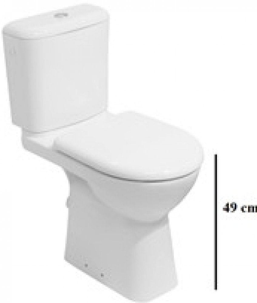 Kombi klozet s levým i pravým napouštěním, splachování dual flush, výška mísy 49 cm se vodorovným odpadem, součástí je instalační sada, součástí není sedátko.PARAMETRY:Balení: 1 pcs ksHmotnost balení: 35,80 kgDruh výrobku: WC kombi komplet Materiál: keramika Barva popisná: bílá Barva základní: bílá Design: oblý Výbava: bez prkénka Typ: stojící lesk/mat: lesk Šířka: 36 cmVýška: 87 cmHloubka: 67 cmProvedení: stojící Splachování: hluboké splachování Druh odpadu: zadní odpad Napouštění: boční 3/8" Objem splachování: 3/6 l Výška WC mísy bez prkénka: 48 cmWC se sedátkem: ne Série: Deep Značka: Jika Záruční lhůta: 2 roky