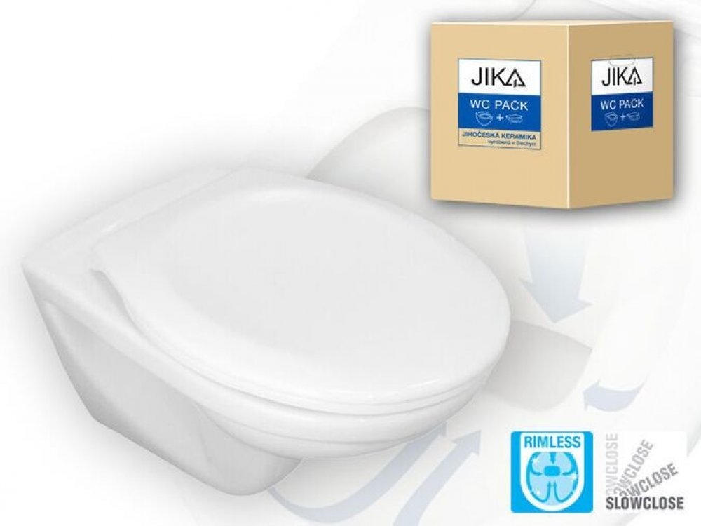 Závěsné WC JIKA Dino Rimless v kombinaci se soft-close sedátkem patří mezi nejprodávanější sety nástěnného WC bez splachovacího kruhu na trhu. Tento český výrobek nabízí za bezkonkurenční cenu maximální užitnou hodnotu a nejlepší technologie. Mísa je vybavena technologií Rimless, díky které není po obvodu mísy oplachovací kruh, který je vždy problémovým místem – šíří se v něm bakterie a drží vodní kámen. Nyní lze WC snadno čistit a splňuje nejvyšší hygienické požadavky. Sedátko je vybaveno soft-close mechanismem, který zajistí, že se sedátko elegantně a bezpečně vrátí do výchozí polohy. Nehrozí tedy hlučné bouchnutí či zranění malých dětí.