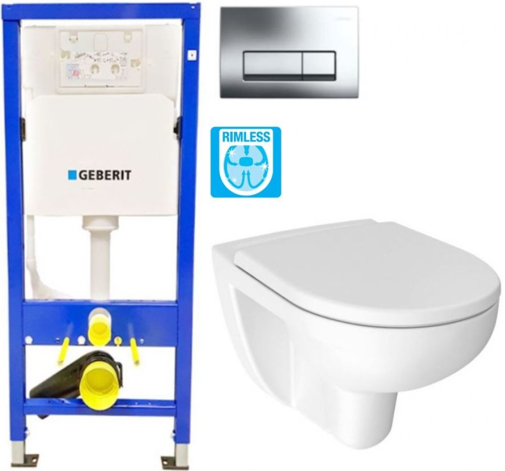 DUOFIX Basic pro závěsné WC, s nádržkou Delta (458.103.00.1) Účel použití- Pro zabudování do předstěnové instalace na částečnou nebo celou výšku místnosti před masivní stěnou nebo stěnou prováděnou suchým procesem- Pro montáž závěsného WC se vzdáleností upevnění 18 cm nebo 23 cm- Pro tloušťku podlahy 0 - 20 cm- Pro ovládání zepředu- Pro ovládání pomocí Geberit ovládacích tlačítek Delta- Pro připojení Geberit AquaClean- Nevhodný pro zabetonováníVlastnosti- Geberit Delta splachovací nádržka pod omítku 12 cm (UP100), ovládání zepředu- Splachovací nádržka pod omítku izolovaná proti orosování- Nastavitelné velké splachovací množství- Malé splachovací množství pevně nastavené- Nastavitelné okamžité spláchnutí možné- Přívod vody zezadu/shora uprostřed- Připojovací hadička k rohovému ventilu ručně přišroubovatelná- 1 množství splachování s Geberit ovládacím tlačítkem Delta15- 2 množství splachování s Geberit ovládacími tlačítky Delta20, Delta21, Delta50- Povrch rámu upravený práškovou barvou, barva Geberit modrá- Samonosný prvek- Rám s otvory ø 9 mm pro upevnění do dřevěných konstrukcí- Pozinkované podpěry, plynule nastavitelné 0 - 20 cm- Patní desky z plastu, hloubka vhodná pro montáž do profilu UW50- Instalační hloubka 12 cmTechnické informaceSplachovací množství - nastavení z výroby 6 a 3,5 lVelké splachovací množství - rozsah nastavení 4,5 / 6 / 7,5 l Ovládací tlačítko DELTA51, pochromované lesklé (115.105.21.1) - Pro ovládání splachování splachovacích nádržek pod omítku Geberit- Pro ovládání zepředu- Pro Geberit splachovací nádržky pod omítku Delta 12 cm (UP100)- Pro 2 množství splachování Lyra plus Závěsné WC, 530x360 mm, Rimless, bílá (H8213840000001) barva bílá materiál sanitární keramika systém splachování Dual Flush, dvě množství vody 4,5/6 l technologie Rimless, bez oplachového kruhu Lyra plus WC sedátko pro závěsné WC, bílá (H8933843000631 rozměry: 355 x 425 mm nerezové úchyty antibakteriální povrchová úprava rozteč 155 mm duroplast