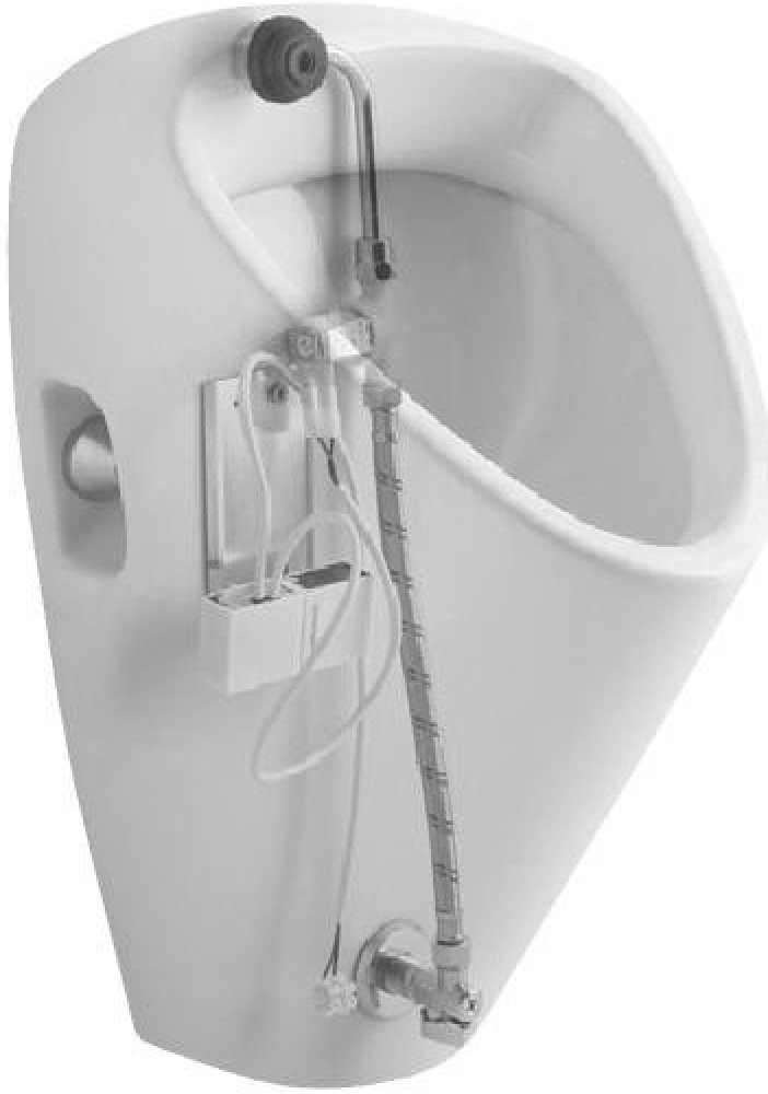 Odsávací urinál antivandal s radarovým senzorem pro bateriové napájení bateriové napájení vnitřní přívod vody speciální antivandal provedení antibak- antibakteriální úprava včetně instalační sady a sifonu 1 l Upevnění bateriového boxu je na suchý zip ve spodní části keramiky. Doporučujeme kombinovat s vhodným modulem pro urinály. Výrobek obsahuje: keramický pisoár a radarovou elektroniku na montáž...