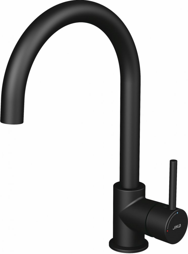 Série koupelnových baterií Mio Style patří mezi oblíbenou řadu díky elegantním tvarům a jednoduchým pákovým ovládáním. Dřezová stojánková baterie v novém barevném provedení černý mat, jehož výhodou je sametově hebký zcela jednotný povrch, který je vysoce odolný proti poškrábání, s vysokým otočným výtokem 193 mm obsahuje velmi kvalitní keramickou kartuš (Ø 35 mm) a úsporný perlátor Neoperl s průtokem 5l/min. Perlátor je vyrobený ze speciálního materiálu proti usazování vodního kamene. Další výhodou vodovodní baterie jsou přepínače tj. klapka proti zpětnému nasátí znečištěné vody. Koupelnové baterie a sprchové příslušenství Mio je kompletováno a 100% testováno v továrně JIKA ve Znojmě. Dostupné v 2Q 2023.