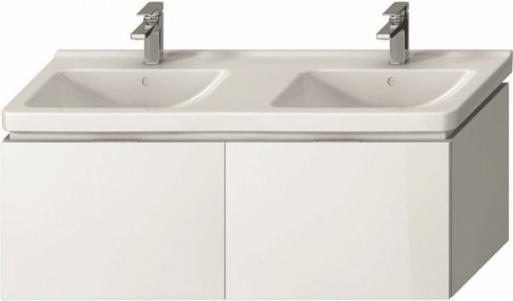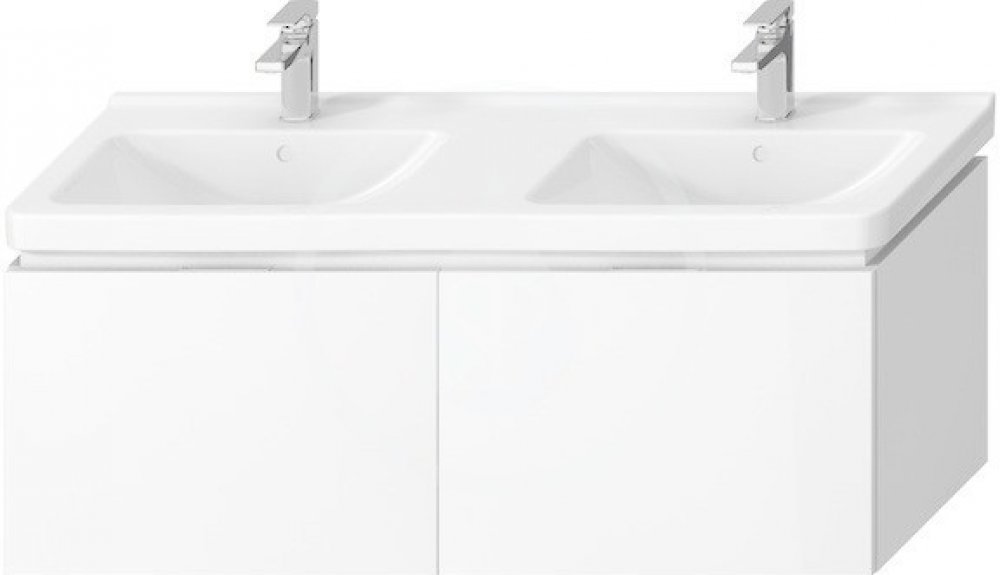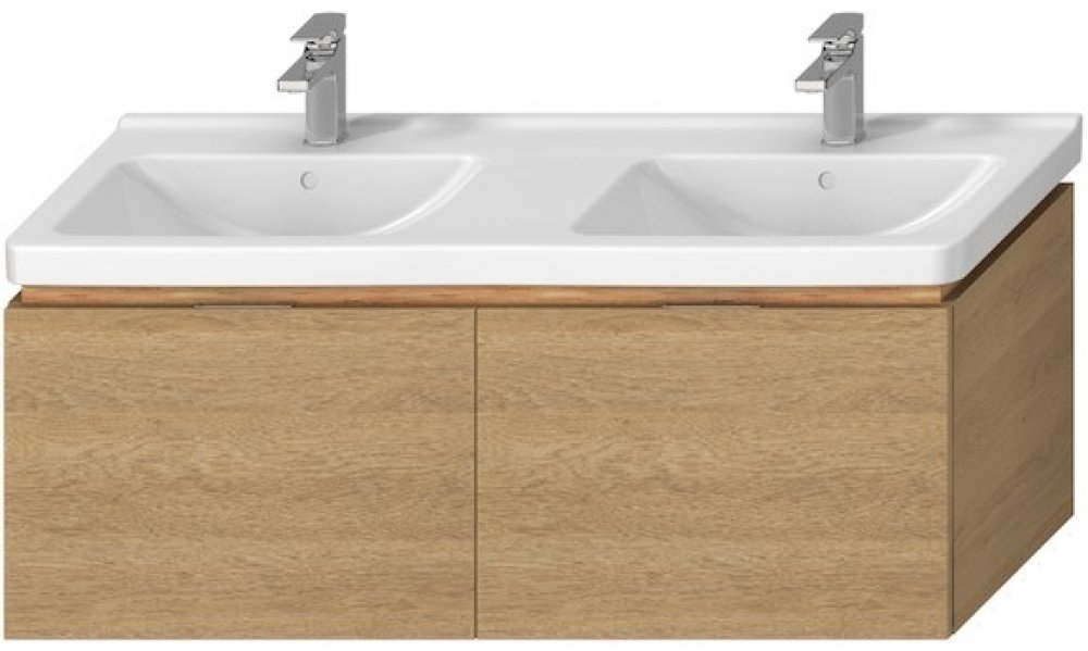 Skříňka pod dvojumyvadlo Jika Cubito Pure, 130 cm, 2 zásuvky, úchytky zapuštěné do hrany dvířek, s brzdou dovíraní, hrany ABS, lesklý lak.