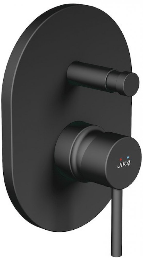 Série koupelnových baterií Mio Style patří mezi oblíbenou řadu díky elegantním tvarům a jednoduchým pákovým ovládáním. Vanová-sprchová podomítková baterie v novém barevném provedení černý mat, jehož výhodou je sametově hebký zcela jednotný povrch, který je vysoce odolný proti poškrábání, obsahuje mosazné těleso s vrchní sadou a velmi kvalitní keramickou kartuš (Ø 35 mm) a úsporný perlátor Neoperl s průtokem 5l/min. Perlátor je vyrobený ze speciálního materiálu proti usazování vodního kamene. Další výhodou vodovodní baterie jsou přepínače tj. klapka proti zpětnému nasátí znečištěné vody. Baterie se dodává bez sprchové příslušenství. Koupelnové baterie a sprchové příslušenství Mio je kompletováno a 100% testováno v továrně JIKA ve Znojmě.