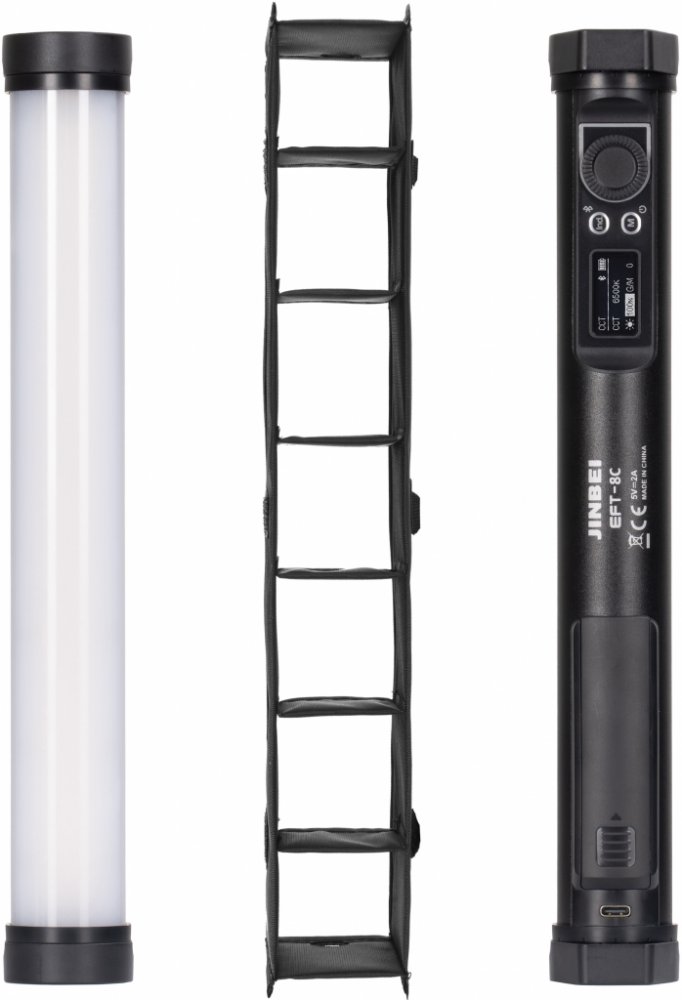 Jinbei EFT 8C je trubcové světlo z řady Jinbei EF a lze jej používat samostatně i spárované s dalšími světly od tohoto výrobce. Světlo s vysoce kvalitními LED čipy využije každý fotograf nebo filmař zaměřující se na produktovou fotografii nebo video, kreativní portréty i light-painting. Dlouhé úzké tělo s možností uchycení na stativ i magnetické povrchy vám pomohou v situacích, kdy světlo využíváte k ambientnímu nasvícení scény.