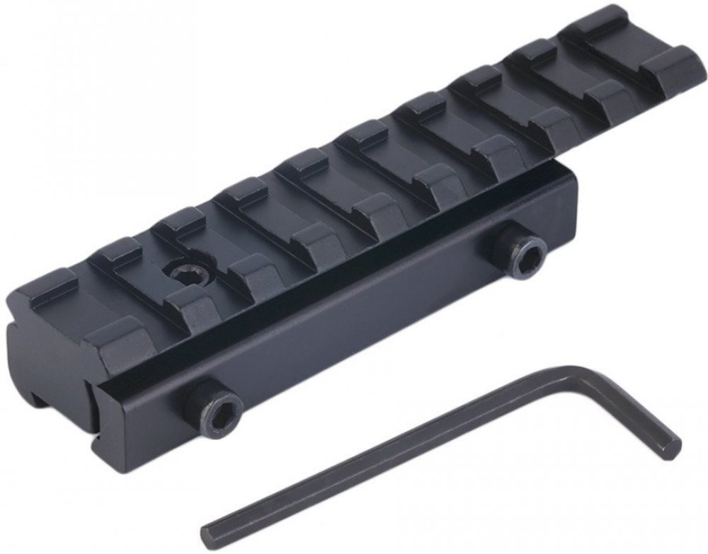 Picatiny montážní předsazená lišta weaver. Adaptér z 11mm na 22mm. 1 rail 9 slotů. Tato redukce slouží ke změně rozteče montážní lišty z 11mm rybiny na 22mm rybinu.