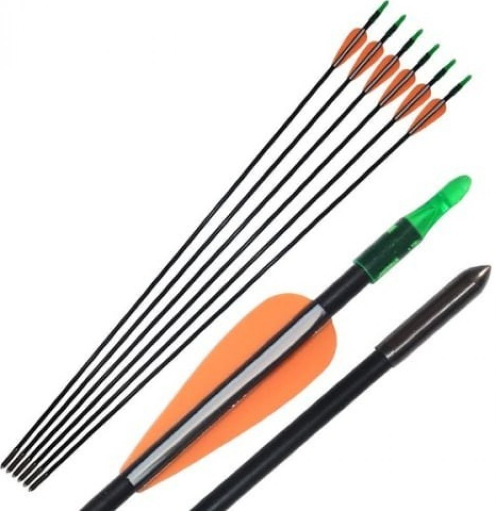 Sklolaminátový šíp do luku s výměnným hrotem délky 30" což je 75cm. Průměr šípu je 6mm. Hrot je pevný.