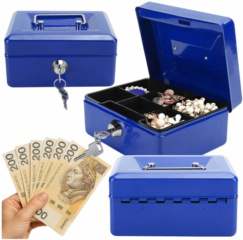- Bezpečnost: Kovová konstrukce a zámek s klíčem poskytují vysokou úroveň ochrany pro hotovost a cennosti.