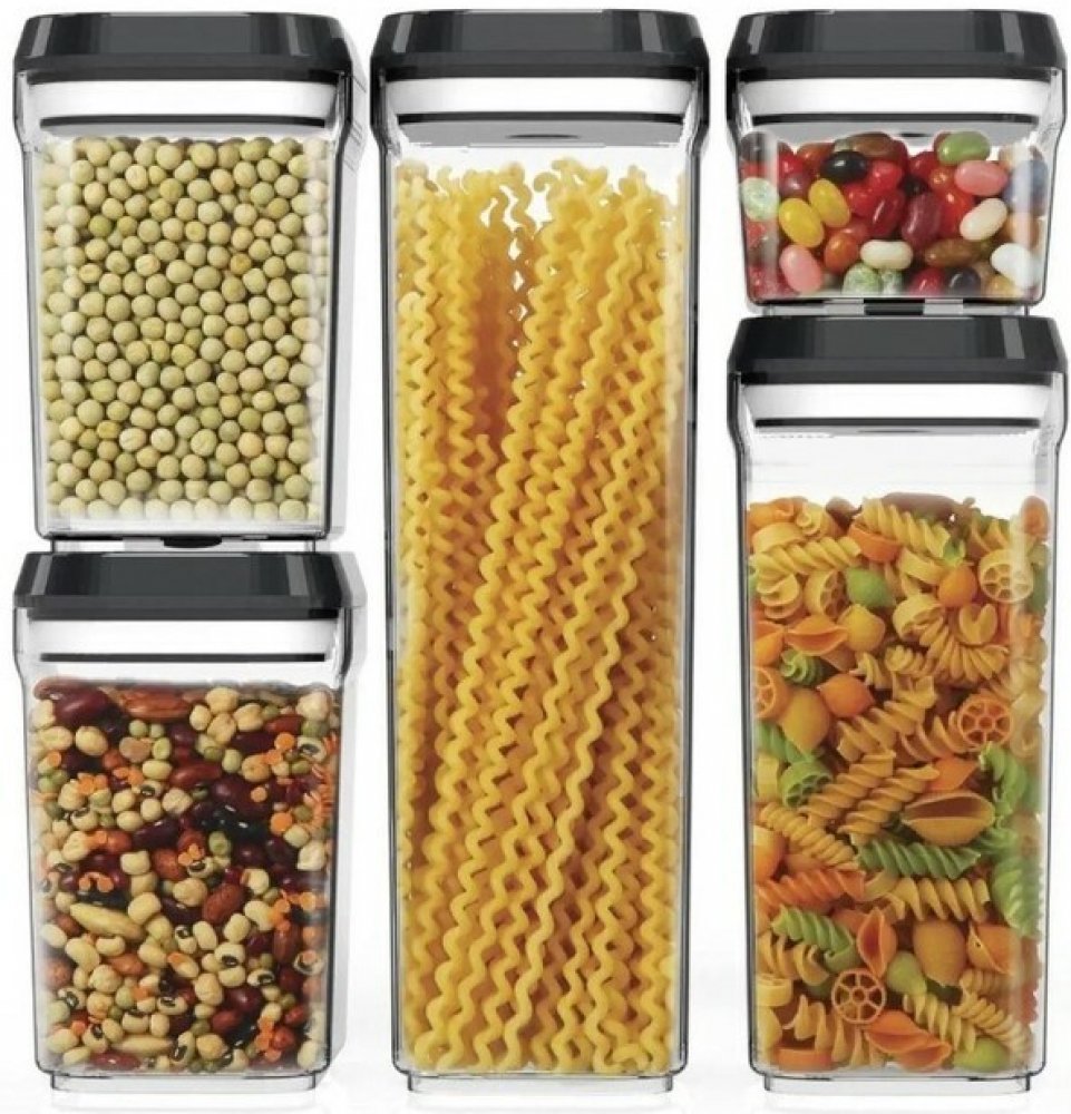 Dózy na potraviny 5ks jsou praktickým řešením pro každou kuchyň, kde záleží na přehledném a kompaktním skladování. Díky svému obdélníkovému tvaru umožňují snadné umístění vedle sebe a efektivní využití prostoru. Jsou vyrobeny z odolného potravinářského plastu, který je průhledný, takže vždy vidíte, co v dóze skladujete. Každá nádoba je vybavena těsnicím víkem s výklopnou částí, což zajišťuje čerstvost uložených potravin a pohodlné každodenní používání.