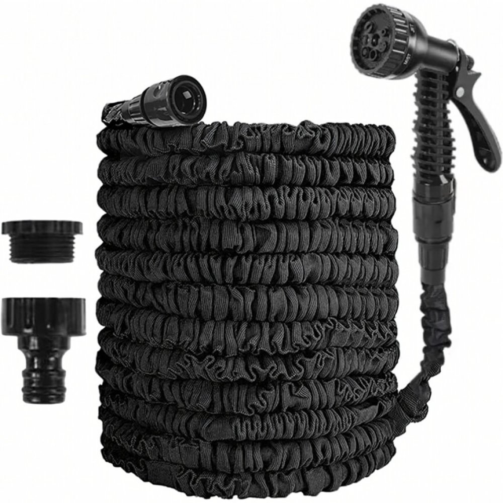 Smršťovací zahradní hadice je praktická a lehká hadice, která se při naplnění vodou automaticky roztáhne až na délku 30 metrů a po vypuštění vody se opět smrští na původní velikost. Díky flexibilní konstrukci se snadno používá bez nepříjemného kroucení nebo zamotávání. Vnitřní trojité latexové jádro zajišťuje vysokou odolnost vůči tlaku a dlouhou životnost. Součástí balení je také 7funkční stříkací pistole, která umožňuje nastavit různé typy proudu vody podle aktuální potřeby – od jemné mlhy až po silný proud. Hadice je ideální pro zavlažování zahrady, mytí auta nebo čištění venkovních ploch.