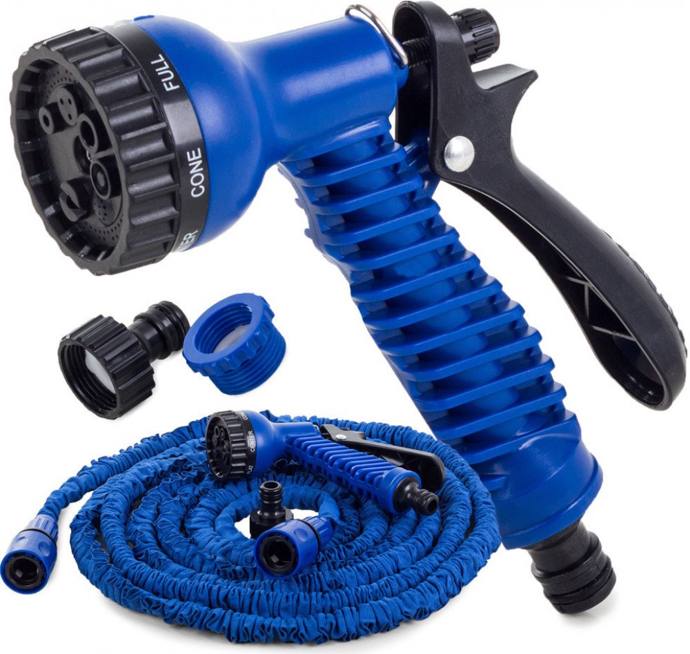 Zahradní smršťovací hadice je lehká, skladná a mimořádně praktická pomůcka nejen pro zalévání zahrady, ale také pro mytí aut, koberců nebo teras. Po naplnění vodou se automaticky prodlouží až na trojnásobek své délky, tedy až na 15 metrů, a po vypuštění se sama vrátí zpět do původní délky. Nezamotává se, neláme a je odolná vůči povětrnostním vlivům.