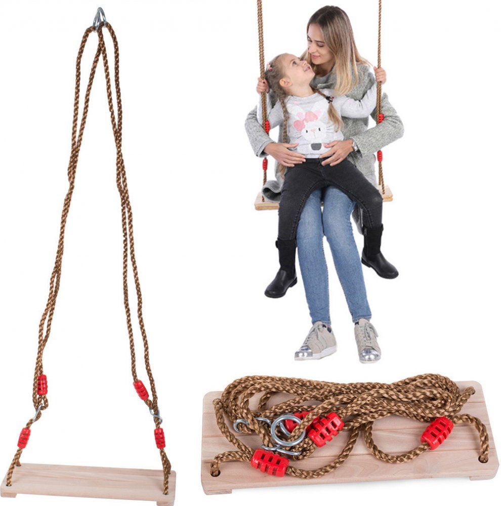 Je vyrobena ze surového dřeva, což umožňuje její využití venku i uvnitř (po ošetření impregnací). Hladce broušený sedák zajišťuje pohodlné sezení a kvalitní provazový závěs bezpečné používání. Houpačku lze snadno zavěsit na strom, pergolu nebo dětskou konstrukci na hřišti.