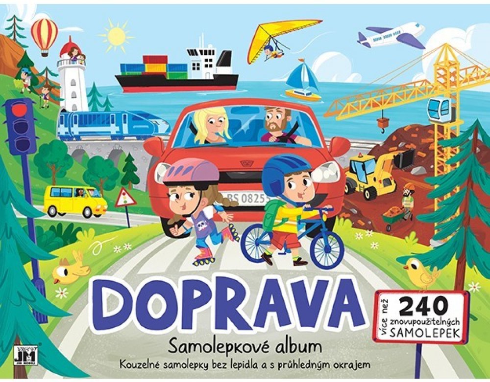 Samolepkové album Doprava obsahuje 4 tematická, krásně barevná pozadí, na nichž děti mohou vytvářet vlastní příběhy a více než 240 opakovaně použitelných samolepek s různým typem dopravních prostředků.