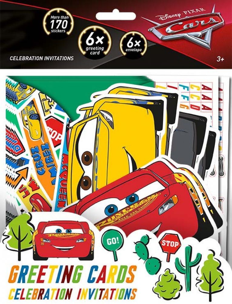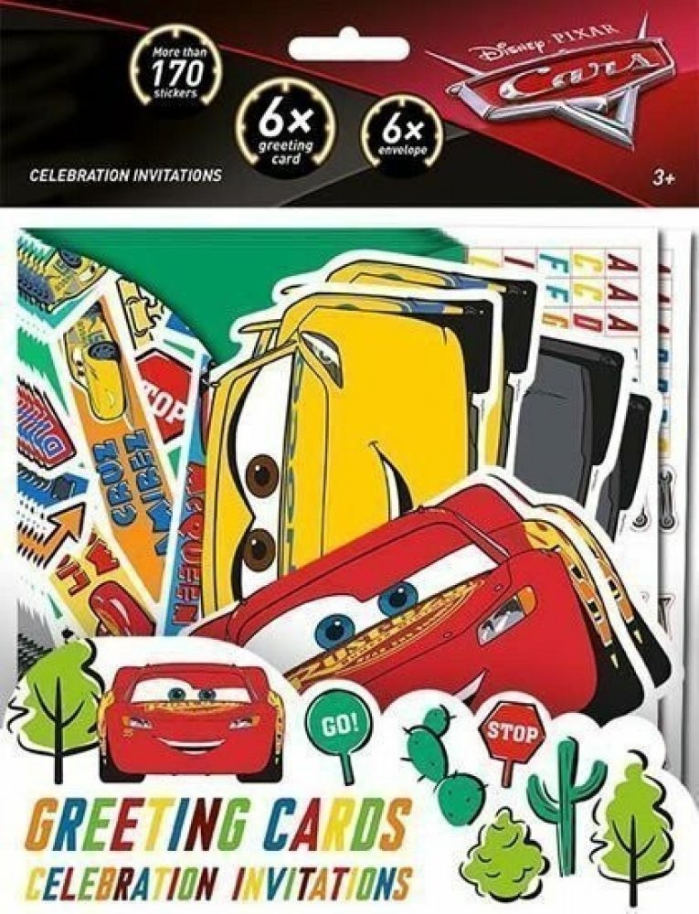 Jiri Models JM Pozvánky na oslavu Auta ;. Balení obsahuje 6 obálek a 6 papírových party pozvánek v oblíbených pohádkových motivech.Když se začínající, avšak velmi ambiciózní závodní auto Blesk McQueen během cesty na velkolepý šampionát Zlatý píst neočekávaně zatoulá do ospalé Kardanové lhoty u Silnice 66, naučí se, že opravdová radost ze života se neskrývá za cílovou rovinkou, ale na cestě k ní. A...