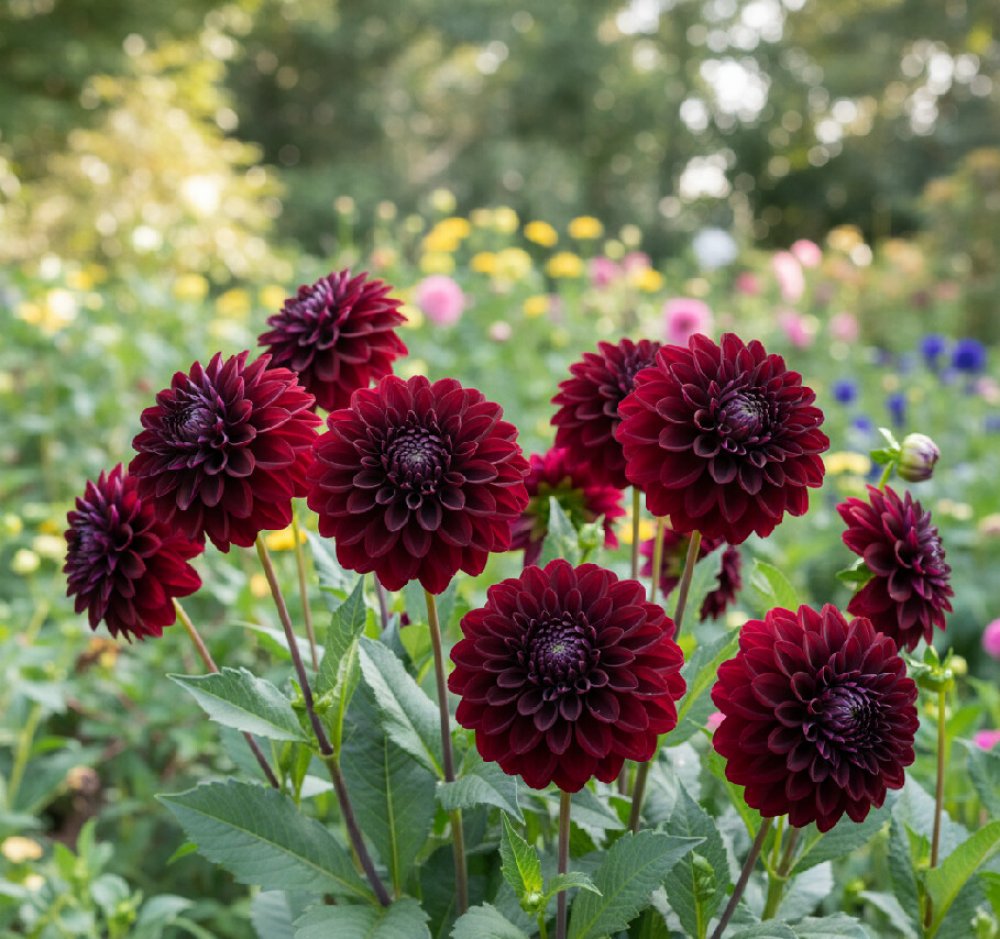 Jiřina 'La Recoleta' (Dahlia 'La Recoleta') patří mezi nejtmavší odrůdy s květy v hlubokém vínově červeném odstínu. Rozkvétá velmi brzy a kvete až do pozdního podzimu. Prodlužuje barevnost vaší zahrady na maximum. Díky kompaktní výšce kolem 80 cm a luxusnímu vzhledu květů se skvěle hodí k řezu do elegantních aranžmá i jako nápadná solitéra.