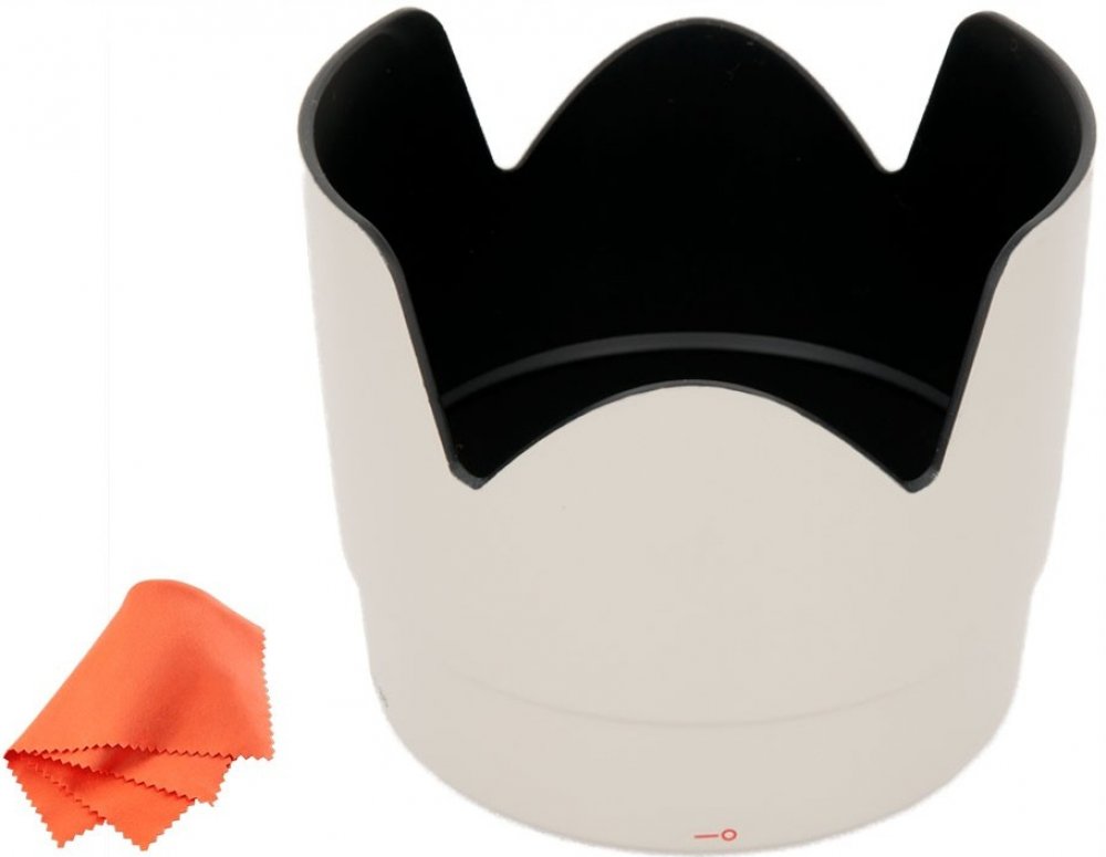 Sluneční clona pro objektivy Canon ET-86. Kryt se hodí pro objektivy s většími ohniskovými vzdálenostmi. Je navržena tak, aby zabránila efektu vinětace a zároveň chránila váš objektiv před přímými slunečními paprsky. Použitím této technologie se vyhnete odleskům a světlům na fotografiích a zvýšíte jejich kontrast a kvalitu.