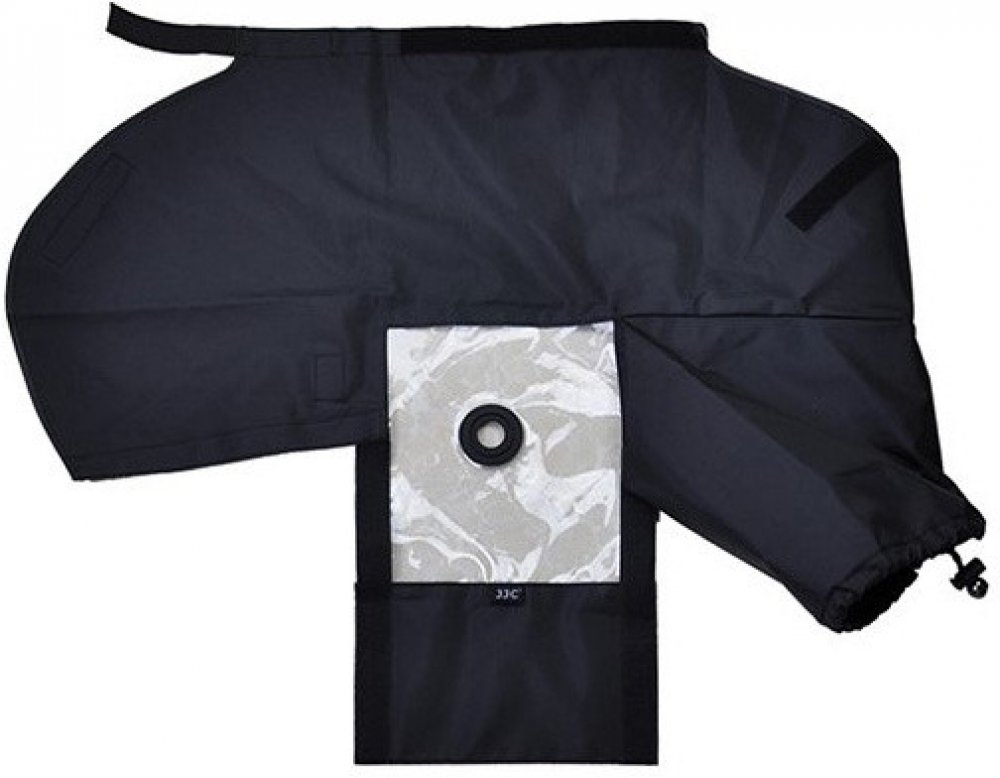 JJC RC DK19 Raincover je pláštěnka vhodná pro fotoaparáty Nikon vybavené očnicí DK 19. Kryt poskytuje vynikající ochranu před deštěm, prachem a nečistotami. Díky průhlednému okénku je displej fotoaparátu dobře viditelný a stále máte snadný přístup ke všem ovládacím tlačítkům. Tato krytka je vhodná pro použití s dlouhými objektivy, jako je 70 200 mm f/2,8, 80 200 mm nebo 18 105 mm,