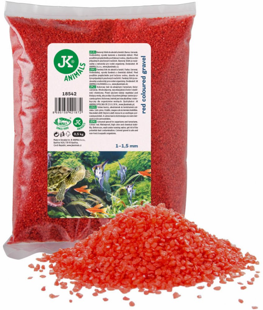 Barevný štěrk do akvárií a terárií je voděodolný, má vysokou barevnou a chemickou stálost. Před použitím propláchněte pod tekoucí vodou, zbavíte se tím případných prachových nečistot.