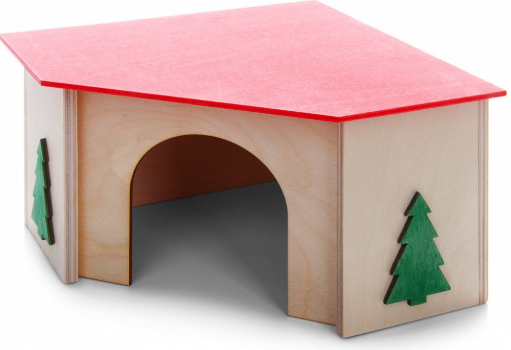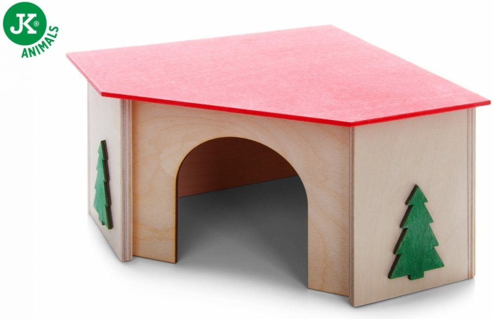 JK ANIMALS Dřevěný domek se stromky pro morčata 21 x 21 x 13 cm