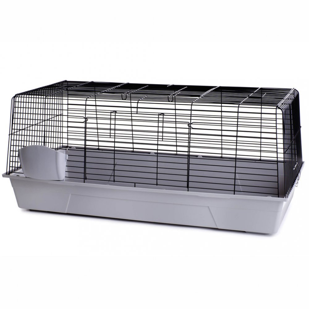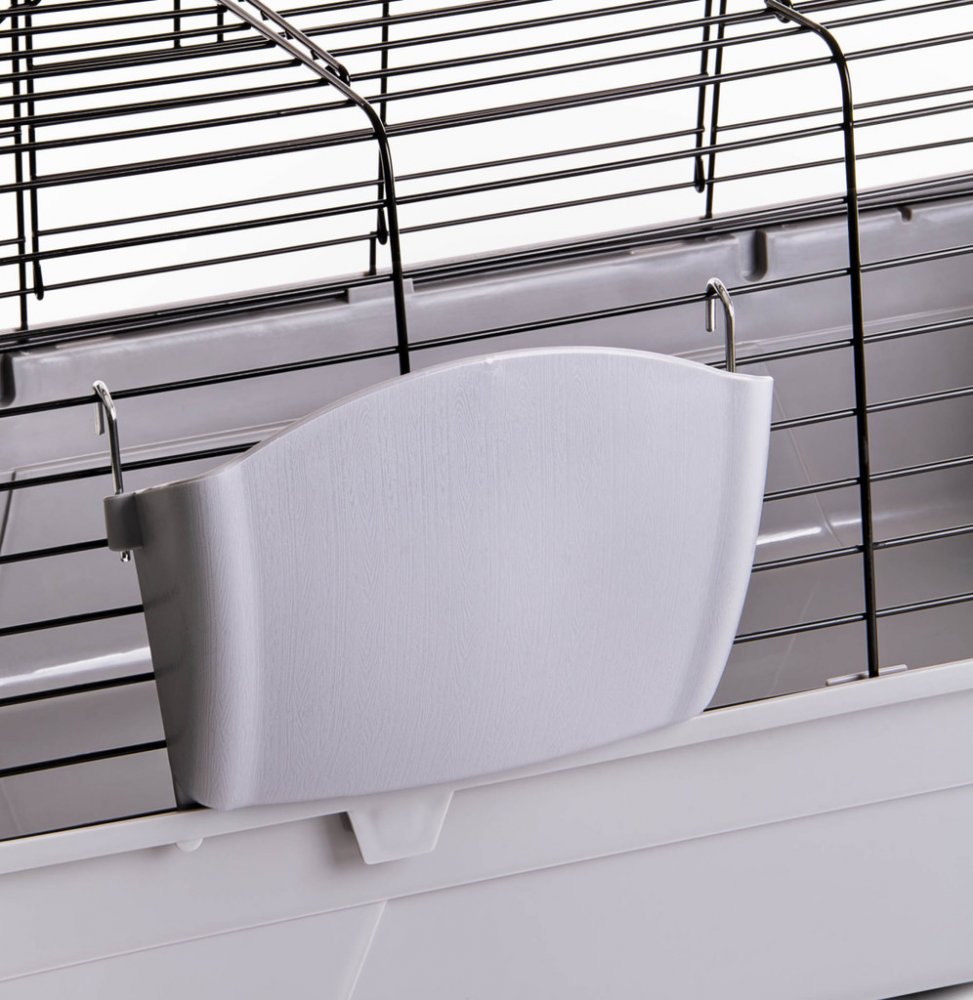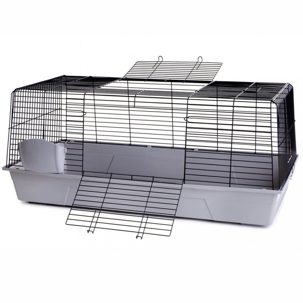 Klece a ohrádky Klec JK ANIMALS králík Black 120, šedá: kvalitní klec pro králíčky nebo morčata, perfektní přístup: přední a horní plně otevíratelné dveře pro snadné čištění, méně nepořádku: zvýšené dno vany zabraňuje vypadávání steliva nebo zbytků jídla, se zásobníkem na seno, s pevnými kovovými sponami, délka klece i s jistícími sponami: 121,5 cm, výška plastového spodku: 18 cm, rozteč drátů: 2 ...