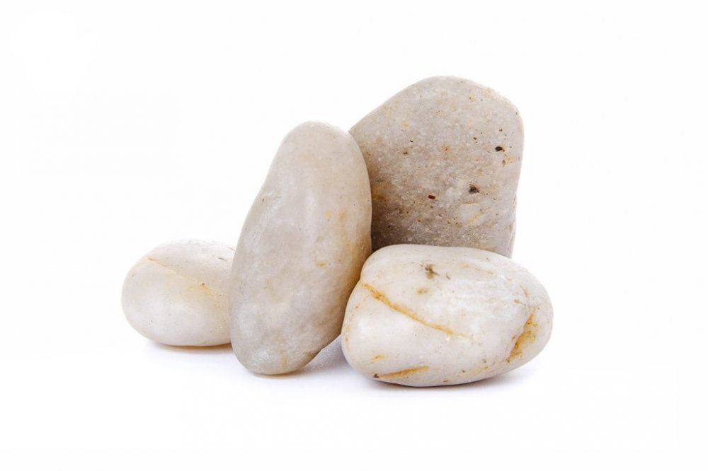 Přírodní křemenné valounky bílé do akvárií a terárií. Balení 2 kg. Frakce 30–50 mm. 100% přírodní akvarijní nebo terarijní dekorace.