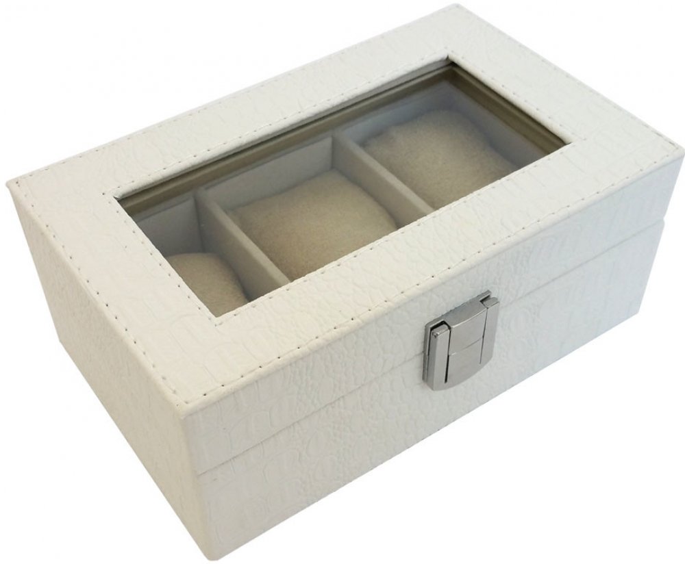 Kazeta na hodinky JK Box SP-935/A20 bílá Moderní design a dokonalé zpracování v kombinaci se syntetickou kůží bílé barvy s krokodýlím vzorem, vytváří luxusní kazetu na hodinky, do které budete ukládat své oblíbené kousky hodinek s radostí.