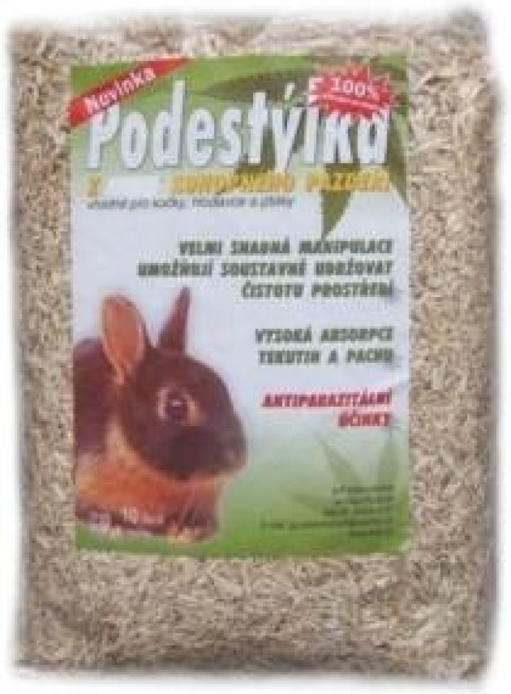 Podestýlka z konopného pazdeří - pro drobná zvířata ze 100% konopí, neprašná a vhodná pro alergiky, měkčí než granulát a šetrná ve spotřebě. 40l Stelivo z konopných vláken s ještě větší savostí 400 - 500%. V konopí obsažené alkaloidy vykazují maximálně příznivé účinky na dýchací soustavu. velmi kvalitní, 500% savost - 12 x vyšší savost než sláma, 4 x vyšší savost než hobliny - pH-neutrální, bezpeč...