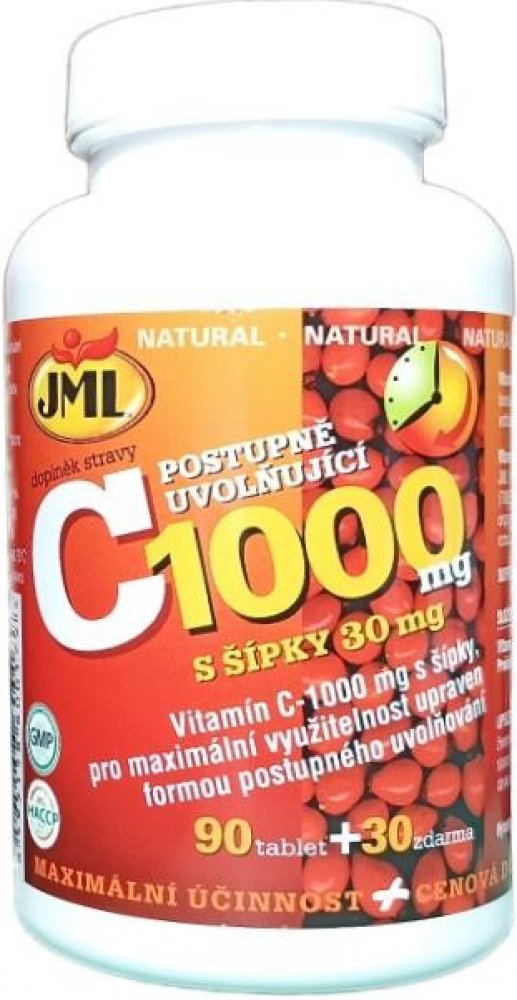 jml fitness line 120 tbl tablety imunita unisex 130 g JML pro dospělé perorální bez příchuti vitamín C imunita a obecné zdraví s postupným uvolňováním 1000.0 mg Kdykoliv Nespecifikováno