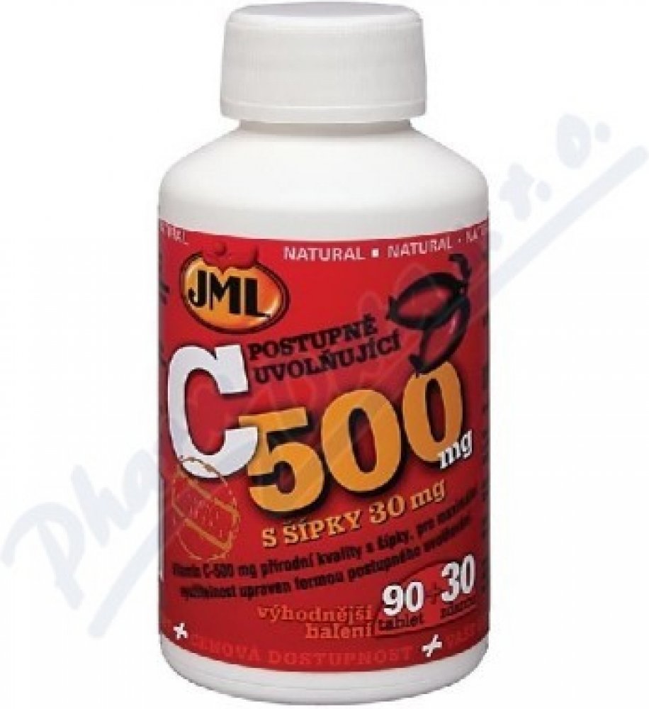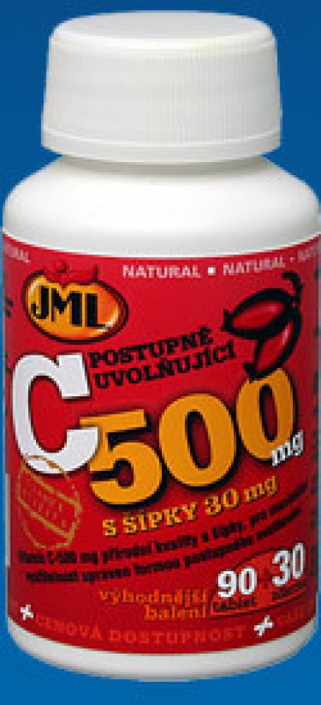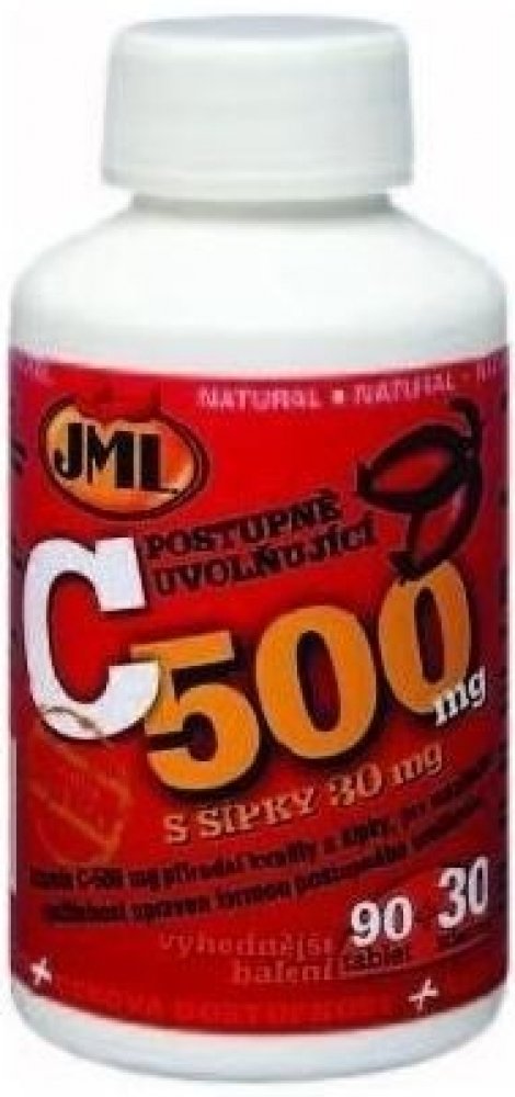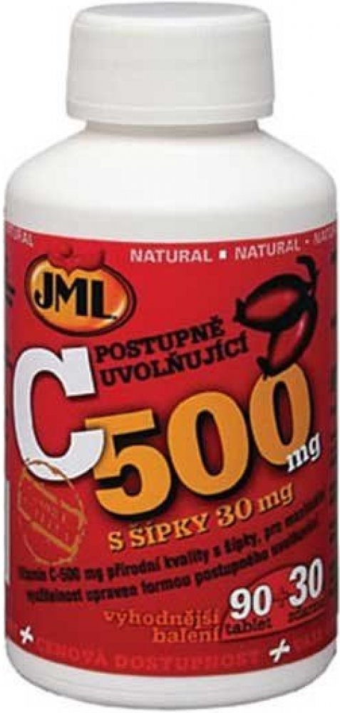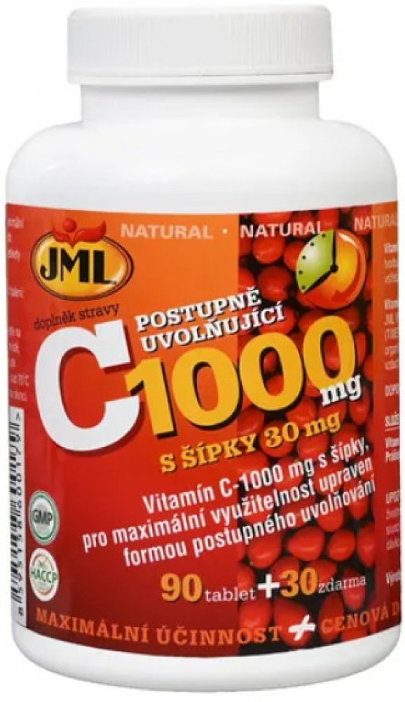 JML Vitamin C-500 mg a C-1000 mg eliminuje tento negativní jev, který brání dokonalému využití dodaného množství vitaminu, formou postupného uvolňování (timed release). Takto upravené tablety zabezpečují plynulý přísun vitaminu C do organismu v průběhu dne bez zbytečných ztrát a umožňují tak maximální využití celé podané dávky. Vitamin je získáván z nejčistších a nejčerstvějších zdrojů přírodní kvality. Součástí tablet je i prášek z růžových šípků v množství 30 mg, který je zdrojem bioflavonoidů, látek rostlinného původu, které významně zesilují působení vlastního vitaminu C, jak jej nacházíme v ovoci či zelenině.