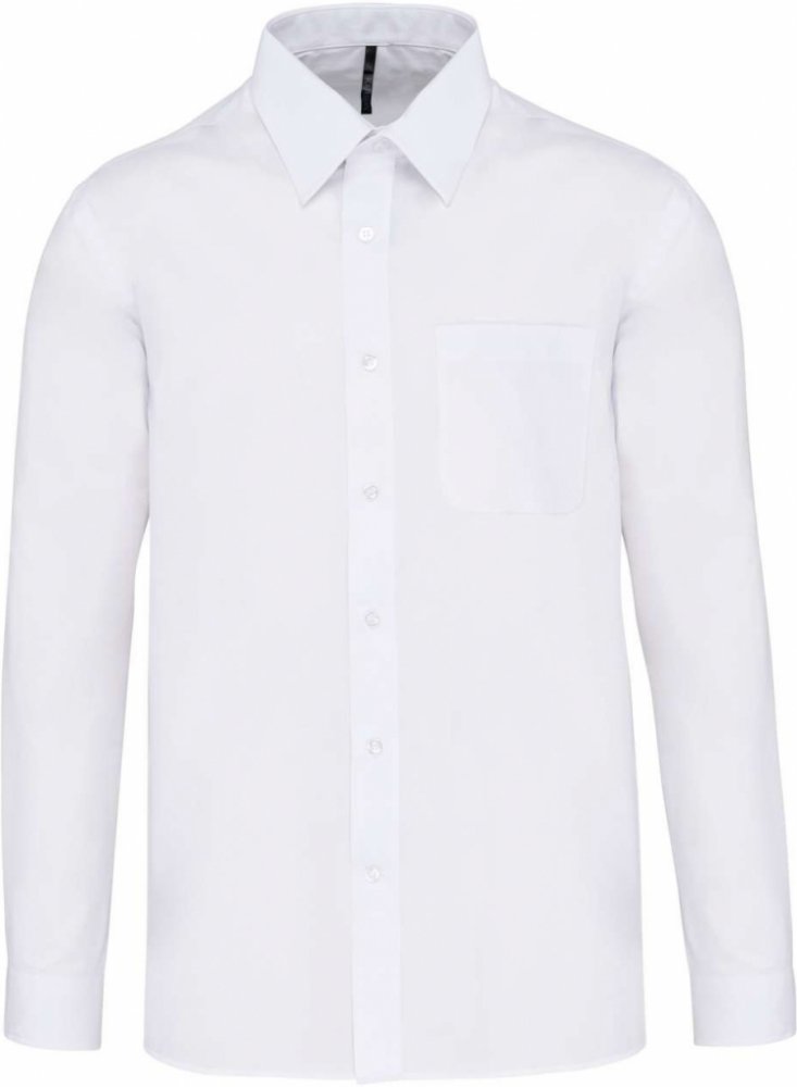 Pánská košile s dlouhým rukávem, zapínáním na knoflíčky a s náprsní kapsou. Košile má nastavitelné manžety, límec je vyztužen špičkami a součástí jsou i 2 náhradní knoflíky. Zadní sedlo dvakrát skládané. Košile je vhodná jako součást vašeho business, firemního oblečení nebo posezení s přáteli.