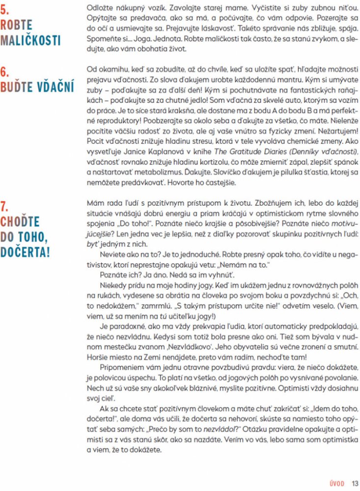 Okrem toho je súčasťou knihy aj 30-dňový jogový program, ktorý sa zameriava na redukovanie